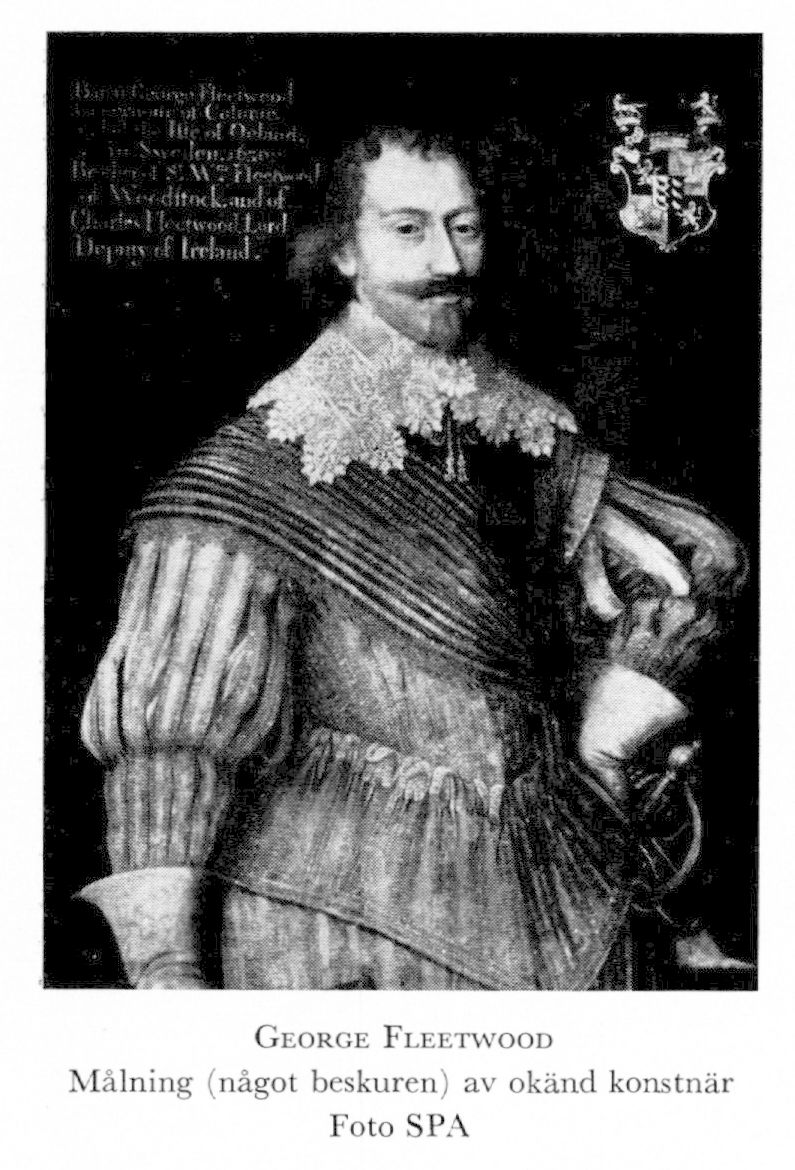 1 Fleetwood, George, dp 30 juni 1605 i Cople, Bedfordshire, England, f 11 juni 1667 på Jälunda, Gryts sn (Söd). Föräldrar: parlamentsled sir Miles F o Anne Luke. Kapten i dansk tjänst trol i nov 1626, var major o kompanichef i sv tjänst vid J Spens reg juni 1629, överstelöjtn 1 okt s å, slagen till riddare av konung Karl I av England 3 juni 1632 (Shaw, 2, s 200), sändebud till Karl I 1636 o 1637, överste för Jönköpings läns infanterireg 22 maj 1640, var kommendant i Greifswald 14 aug 1641, kommendant i Kolberg 17 okt 1641–1653, naturaliserad i Sverige o introd i svenneklassen 29 jan 1649, gen:major av inf 8 mars 1653, frih 1 juni 1654, sändebud till protektorn O Cromwell i England 24 nov 1654 (instr 15 maj 1655), gen:löjtn av inf 30 okt 1656, kreditivbrev för honom o J F v Friesendorff till protektorn Cromwell 30 juli 1657 (instr 1 aug s å), nytt kreditivbrev för F o v Friesendorff till protektorn R Cromwell 3 okt 1658, krigsråd 13 (ej 12, ej 16) juli 1665.