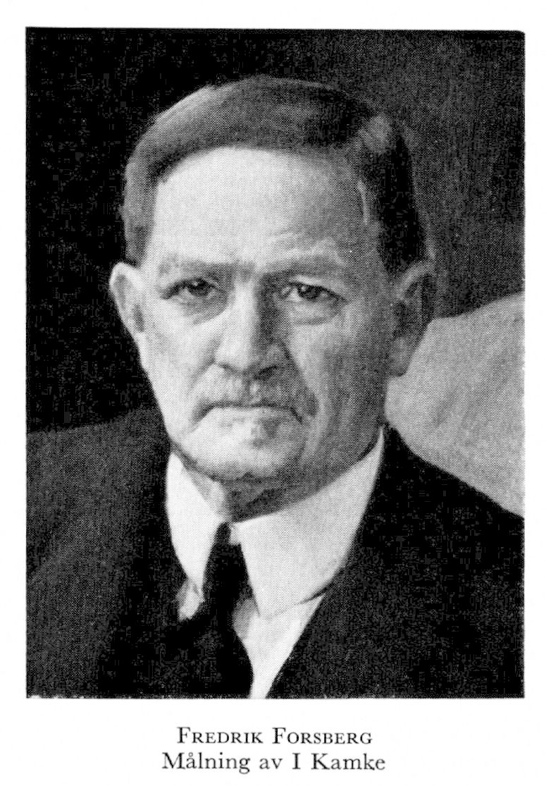Forsberg, Fredrik, f 10 juli 1856 i Folkesbacka, Sundborns sn (Kopp), d 17 juni 1942 i Sandviken (enl Munktorps dödbok). Moder: Stina Forsberg. Elev vid Falu lärov vt 1868–16 okt 1873, åtnjöt gratis privatundervisning av mag O W Wahlin i Falun 1873–74, elev vid K teknolog inst 15 sept 1874, utex 10 juni 1877 från avd för maskinbyggnadskonst o mekanisk teknologi, ritare vid Göranssons mek verkstad, Sthlm, 1877, arbetade vid flottans mek verkstad, Sthlm, 1877–78, ritare o konstruktör vid Sandvikens Jernverk 1878–85, föreståndare för tråddrageriavd där 1885–1916, styr:led i See Fabriks ab 1895–1936, styr:ordf från 1925, styr:led i The Athenia Steel Co 1902–22. GM vid internationella utst i Liège 1905, RVO 1917.