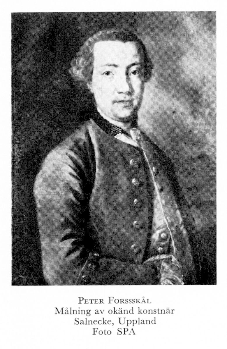 2 Forsskål, Peter (Petrus), son till F 1 i hans 1:a g, d 11 jan 1732 i Helsingfors, d 11 juli 1763 i byn Jerim i sydv Arabien (Jemen). Inskr vid Uppsala univ 27 nov 1742, studier i hemmet, åter till Uppsala 1751, teol ex där 26 mars s å, Guthermuthsk stipendiat s å, inskr vid Göttingens univ 13 okt 1753, fil dr o mag där 12 juni 1756, doc i ekonomi vid Uppsala univ i april eller maj 1759, i dansk tjänst s å, dansk tit prof s å, botanist 1761–63 vid den danska forskningsexpedition, som avgick 1761 över Egypten till Sydarabien. KorrespL Vet soc i Göttingen 1756. – Ogift.