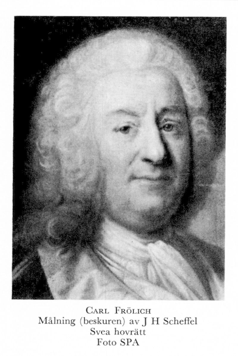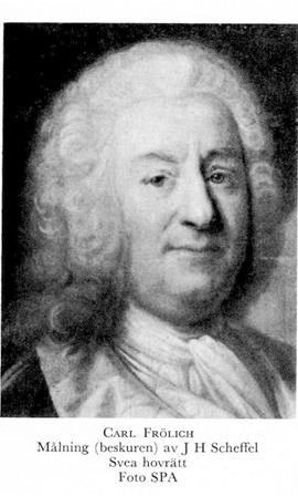 2 Frölich, Carl, son till F 1 i hans 1: a g, f 1680 i Västergötland, begr 17 dec 1754 i Sthlm (Maria). Musketerare vid livgardet 1 juni 1696–31 juli 1697, fänrik vid Hälsinge reg 17 juli 1699, löjtn där 13 nov 1700, livdrabant 27 sept 1701, kapten vid grenadjärerna s å, överstelöjtn vid sv adelsfanan 14 juli 1710, konfirm:fullm 24 jan 1716, sekundöverste för Västgöta kavallerireg 27 febr 1717, överste där 28 april 1719, landsh i Österbottens län 4 nov 1734, president i Åbo hovrätt 20 juni 1739 (tilltr 16 okt s å), president i Svea hovrätt 8 nov 1743–1750. – RSO 1748.