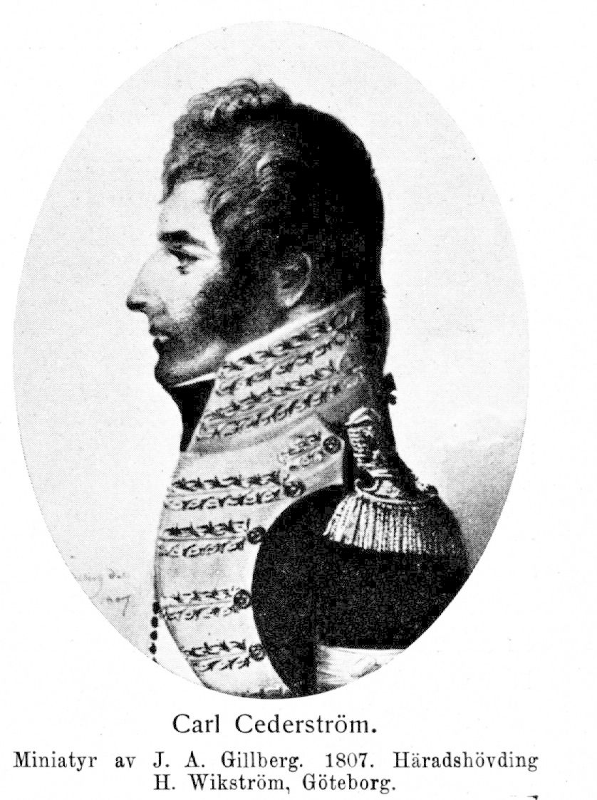 6. Carl Cederström, de båda föregåendes broder, f. 24 okt. 1774, d 30 dec. 1842 i Karlstad. Sergeant vid Västerbottens regemente 1781 och vid Blå och gula gardet 1791; sekundadjutant vid livgardet 16 nov. 1791; löjtnant därstädes 10 apr. 1796; kapten 27 okt. 1802; regementskvartermästare 20 okt. 1804; kompanichef 1 dec. 1806; förste major vid Närkes och Värmlands regemente 7 mars 1808; brigadchef vid västra armén under kriget 1808—09; överstelöjtnant i regementet 29 juni 1809 och vid regementet 27 nov. 1810; tf. chef för Värmlands regemente 7 juni 1812; överste och chef för detsamma 17 nov. 1812; generaladjutant i generalstaben för armén 5 nov. 1821; generalmajor 14 mars 1824; erhöll avsked 27 apr. 1840. RSO 1808; KSO 1822; LKrVA 1832; KmstkSO 1837.