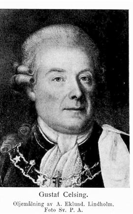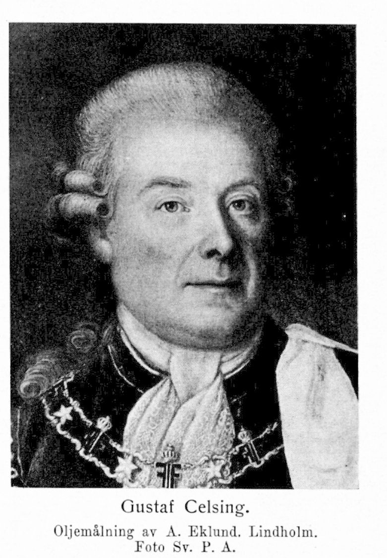 2. Gustaf Celsing, den föregåendes son, f. 9 jan. 1723 i Stockholm, d av slag 30 jan. 1789 därstädes. Student i Uppsala 14 juni 1733; erhöll på riksens ständers tillstyrkan anslag för studier i de orientaliska språken 2 maj 1739 och 13 okt. 1743. E. o. kanslist i utrikesexpeditionen 1740; hovjunkare 1745; avfärdad till Konstantinopel för att öva tillsyn över legationen 4 sept. 1745 (med kommissionssekreterarens lön och, till eventuellt bruk, fullmakt enligt K. brev 12 aug.); resident i Konstantinopel 6 juli 1747; hovråd 1748; envoyé 19 jan. 1750; erhöll kansliråds titel 1 mars 1756 och statssekreterares titel 11 sept. 1769; president i kommerskollegiet 12 nov. 1770 (tillträdde 1774); rapellerad från Konstantinopel 3 juni 1771; deltog i riksdagarna 1778 och 1786; friherre 27 dec. 1778. RNO 1773; KNO 1775; ledamot av Patriotiska sällskapet 1781. — Ogift.