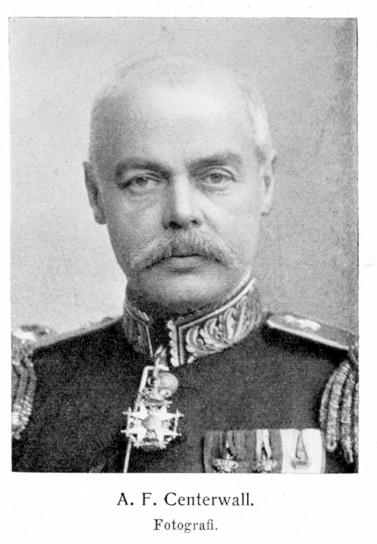 2. Anders Fredrik Centerwall, den föregåendes syssling, f. 17 mars 1845 i Malmö, d 18 aug. 1907 i Stockholm. Föräldrar: rådmannen och auditören Olof Jonas Centerwall och Karolina Oskaria Felicia Gullander. Kadett vid krigsakademien å Karlberg 2 apr. 1861; avlade officersexamen 9 dec. 1864; underlöjtnant vid Göta artilleriregemente 30 dec. 1864; elev vid krigshögskolan å Marieberg 31 aug. 1867—27 okt. 1869; repetitör vid samma skola 15 okt. 1869—14 juli 1872; artilleristabsofficer 11 aug. 1870—apr. 1873; löjtnant vid Göta artilleriregemente 15 dec. 1871; biträdande lärare i artilleri vid krigshögskolan 31 mars 1873; lärare i artilleriritning vid samma skola 9 okt. 1873—7 febr. 1885; lärare i artilleri vid samma skola 29 sept. 1875—19 jan. 1878; kapten av andra klass vid Göta artilleriregemente 3 dec. 1875; ledamot av svensk-norska gränskommittén 13 apr. 1877; beordrad till artilleriets konstruktionskontor 28 apr. 1877; konstruktionsofficer och chef för artilleriets konstruktionskontor 31 juli 1877—1884; beordrad att deltaga i generalstabens fältövningar 1 juli 1881; ledamot i den av artilleristyrelsen tillsatta kommittén angående konstruktion av perkussionsrör m. m. 14 jan. 1882; adjungerad ledamot av artillerikommittén angående exercisreglemente för fästnings- och positionsartilleriet 9 okt. 1882—26 apr. 1883; chef för första kompaniet vid Göta artilleriregemente 20 sept. 1884; kapten av första klass vid samma regemente 2 febr. 1886; chef för nionde batteriet vid samma regemente 10 febr. 1886; chef för fästningskompaniernas skjutskola 3 juli 1886, 30 juni 1887, 29 juni 1889 och 30 juni 1890; major vid Vaxholms artillerikår 15 mars 1889; ledamot av artillerikommittén 22 febr.—16 apr. 1890 och ordförande i artillerikommittén 23 sept.—22 dec. 1891; ledamot av kommittén angående nya bestyckningsplaner för befästningarna i Stockholms skärgård m. fl. platser 5 juni 1891—1892; ordförande i förvaltningsdirektionen vid Vaxholms artillerikår 5 sept. 1891; chef och förste lärare vid fästningsartilleriets skjutskola 18 juli 1892; överstelöjtnant och tf. chef för Karlskrona artillerikår 17 febr. 1893; sakkunnig inom sjöförsvarsdepartementet angående upprättandet av Karlskrona artillerikår 17 febr. 1893; kommendant å sjöfästningarna vid Karlskrona 6 juni 1893; överste och chef för Karlskrona artillerikår 13 sept. 1894; ledamot av kommittén angående elektriska lysmaskiner och avståndsmätare på Kungsholms fästning 25 jan. 1896—18 febr. 1897; stadsfullmäktig i Karlskrona 11 mars 1897—1901 och var därunder bl. a. ledamot av kommittén angående stadsplan m. m. 19 dec. 1898—1901 och av rådhusbyggnadskommittén 1899, ordförande i beredningsutskottet 1900—01, ledamot av drätselkammaren 26 okt. 1899—1901 (ordförande 1900 —01) samt stadsfullmäktiges v. ordförande 11 jan.—16 nov. 1900 och ordförande 16 nov. 1900—1901; ledamot av Blekinge läns landsting 1900—01; generalmajor och chef för kustartilleriet 22 nov. 1901; sakkunnig angående reglementariska föreskrifter för kustartilleriet 1901 (K. bemyndigande 5 juli) —14 juni 1903; en av stiftarna av a.-b. International harvester company 1904 och ledamot av dess styrelse från 14 okt. 1904. BJDDO 1874; RNS:tOO 1880; LKrVA 1884; RSO 1886; RVO 1890; LÖS 1894; KSO2kl 1897; KSO1kl 1901; HedLÖS 1901; innehade dessutom flera utländska ordnar.