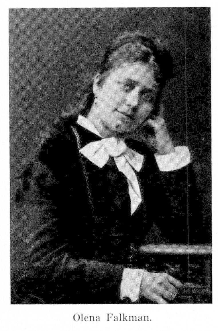 Olena F. växte upp i S:t Petersburg, där hennes far, den originelle brukspatronen C. J. Falkman, var kejserlig hovdestillatör. Sin musikutbildning fick hon av den kände italienske sångpedagogen Ronconi. Vid 1870-talets mitt framträdde hon i Stockholm som konsertsångerska. Dessförinnan hade hon konserterat i Europa tillsammans med violinisten A. Wilhelmj, vars konst hon varmt beundrade. Han sökte förgäves förmå henne att uppsöka Richard Wagner i Bayreuth. På någon operascen framträdde aldrig Olena F.; hon höll sig till konsertestraden. Med »violinkungen» J. Joachim, som för Olena F. stod som den främste violinmästaren, gjorde hon en konsertresa i Skandinavien. Fredrika Limnell, som i sina brev skildrat Stockholms musikkretsar, berättar, att Olena F. våren 1874 sjöng några Schu-mannsånger »förträffligt till allas jubel». »Hon har en storartad och skön, sällsynt full och välljudande röst och ett sant och ädelt föredrag ... En onämnbar grazia omsvärmar varje hennes rörelse och allt hennes väsende.» En annan högt musikbildad samtida, Helena Nyblom, skildrar i sina minnen Olena F:s »sympatiska person ... Med sin slanka gestalt och de mörka, melankoliska ögonen påminde hon om Runebergs Nadeschda. Sällan har jag hört en röst med en mera bedårande klang, som en mjuk violoncell».