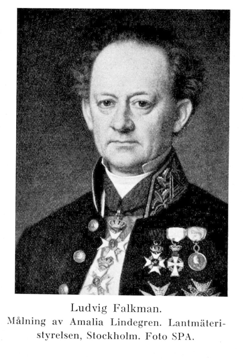 5. Ludvig Berckhan Falkman, son av F. 3, f. 22 maj 1808 i Malmö (Caroli), d. 3 jan. 1891 i Stockholm (Hedv. El.). Skolundervisning i Malmö 1819–25; student vid Lunds univ. 4 okt. 1825; lantmäterielev 9 juli 1827; lantmäteriex. 18 maj 1829; lantmäteriauskultant s. d.; ex. vid Skogsinstitutet 29 juli s. å.; tf. vikarie för kommissionslantmätaren C. E. Åhrberg i Malmöhus län 6 febr. 1832; vice kommissionslantmätare i Malmöhus län 28 jan. 1833; vikarie för förste lantmätaren i Malmöhus län 2 aprils, å.; kommissionslantmätare 22 juli 1835, men behöll nämnda vikariat till 1840; förste lantmätare i Malmöhus län 27 april 1840; led. av kommittén för utarbetande av föreskrifter rörande hemmansklyvning och jordavsöndring i Malmöhus län 13 okt. 1841; tillika rådman i Malmö 25 nov. 1843 (installerad 1 dec. s. å.)–1849; erhöll k. uppdrag 16 okt. 1844 och 21 april 1846 att förteckna handlingar rörande Skåne, Halland och Blekinge i dåv. danska gehejmearkivet samt 11 aug. 1846 att utreda frågan om äganderätten till de halländska kyrkohemmanen; sekreterare i Malmöhus läns hushållningssällskap 26 juni (tf. sedan 4 jan.) 1846–1849; uppdrag 24 febr. 1847 att undersöka frågan om böndernas på ön Ven skatter; överdirektör och chef för lantmäteriet och justeringsverket 12 juni (tillträde 20 sept.) 1849, generaldirektör där 6 aug. 1864–16 dec. 1881; led. av kommittén för främjande av förbättrad skogsskötsel (betänkande 28 juni 1856). – RVO 1846; RDDO s. å.; LLA 1849; LSkS s. å. (skattmäst. 1850–55); Malmöhus läns hushållningssällskaps guldmedalj s. å.; RNO 1854; RNS:tOO 1857; KVO1kl 1863; KNS:tOO1kl 1864; KNO1kl 1870; HedLLA 1876; Iqml 18 storl. 1881.