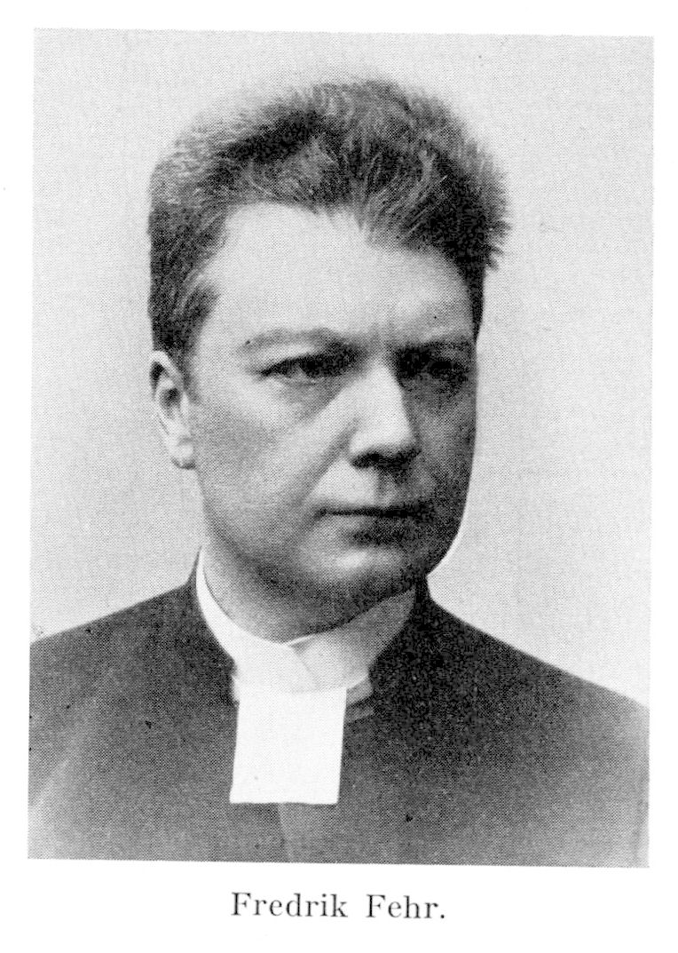 1. Fredrik August Fehr, f. 25 april 1849 i Stockholm (Maria), d. 14 maj 1895 å Eknäs, Västerhaninge sn (Sth.). Föräldrar: kammarrådet och bruksägaren Carl August Fehr och Hilda Lovisa Christina Hildebrand. Elev i Klara lägre elementarläroverk i Stockholm 1858; elev vid Stockholms gymnasium 1864; mogenhetsex. 19 maj 1868; student vid Uppsala univ. 26 maj s. å.; fil. kand. där 31 maj 1871; disp. pro gradu 13 mars 1872; docent i hebreiska språket vid Uppsala univ. 28 mars s. å.; fil. doktor 31 maj s. å.; teol. dimissionsex. 31 jan. 1873; prästex. 31 maj s. å.; prästvigd för ärkestiftet 8 juni s. å.; tjänstledig från docenturen s. å.; pastorsadjunkt i Nikolai förs., Stockholm, 10 juni s. å.–sept. 1874; tillika vice lektor i teologi och hebreiska vid Stockholms gymnasium vt. 1874; studieresa till Tyskland sept. 1874–aug. 1875; tjänstgjorde efter hemkomsten åter som docent i Uppsala; vik. rektor vid Nisbethska flickskolan i Uppsala jan. 1876–maj 1877, ordinarie 1877–78; pastoralex. i Uppsala 11 okt. 1879; vik. lektor i teologi vid Stockholms gymnasium 1879–80; komminister i Maria Magdalena förs., Stockholm, 27 juli 1880 (tilltr. 1 febr. 1881); teol. kandidat i Uppsala 15 sept. 1883; kyrkoherde i Nikolai förs. och pastor primarius 30 jan. 1884 (tilltr. 1 febr. s. å., som preses i Stockholms stads konsistorium 5 febr. s. å.); teol. doktor vid Giessens univ., Tyskland, 4 febr. 1892. Led. av kyrkomötet 1888 och 1893; led. av överstyrelsen för Stockholms stads folkskolor 1888–90; inspektor vid h. a. läroverket å Södermalm från 1885 och vid Wallinska skolan från 1890. LNO 1884; KNO2kl 1892; innehade även utländska ordnar.