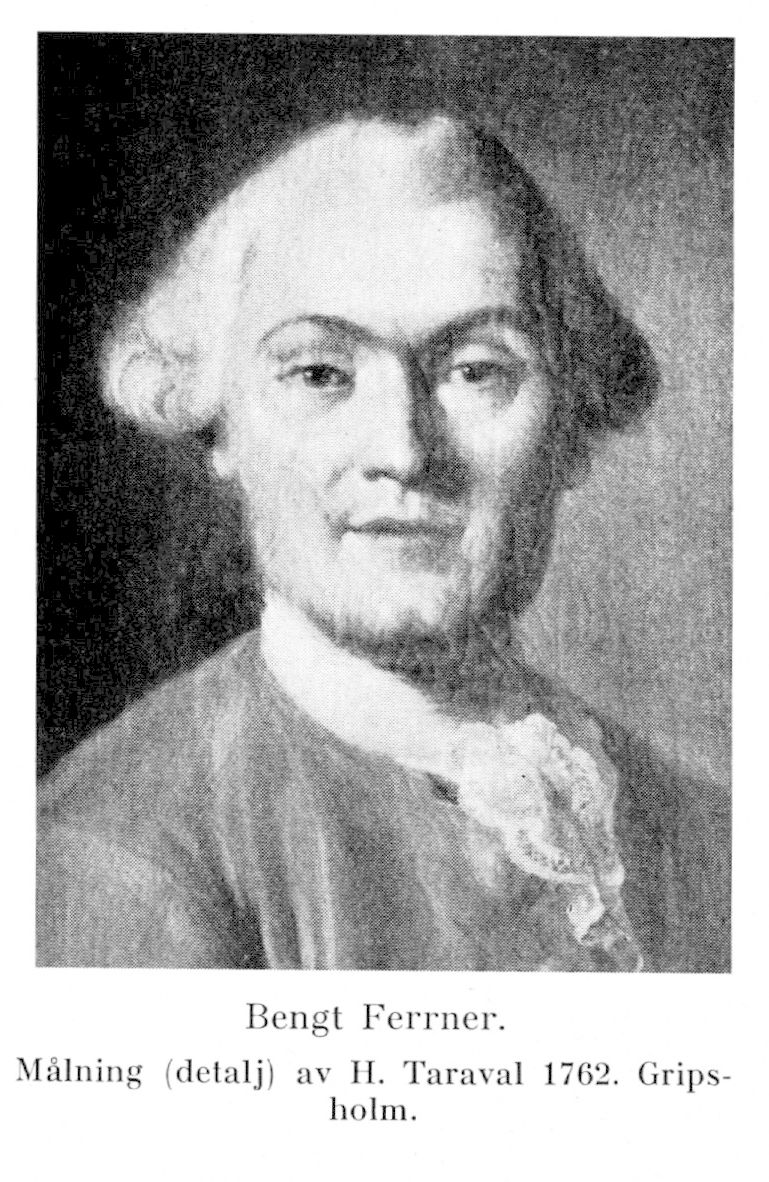 Ferrner, Bengt (före adlandet Ferner), f. 10 dec. 1724 i Nyeds prästgård (Värml.), d. 20 okt. 1802 i Stockholm (Ridd.). Föräldrar: vice prosten och kyrkoherden magister Georg Jonsson Ferner och Anna Helena Noreen. Elev vid trivialskolan och gymnasiet i Karlstad; student vid Uppsala univ. 3 okt. 1743; ämnessven i VA 9 april 1748; astronomie observator vid Uppsala univ. 22 juni 1751; professor i matematik vid kadettskolan i Karlskrona 6 nov. 1756; tjänstledig och förordnad att uppehålla M. Strömers professur i astronomi vid Uppsala univ. (medan denne var tf. professor vid kadettskolan; säte och stämma i konsistoriet 23 dec. s.å.) 5 nov. s.å.–28 febr. 1758; utrikes studieresa 1758–63; handledare för kronprins Gustavs (III) studier mars 1764–71; kansliråds namn, heder och värdighet 18 nov. 1765; adlad 4 nov. 1766; erhöll av Gustav III från tronbestigningen 1771 årlig pension. Led. av ridderskapet och adeln vid riksdagarna 1778 (lagutsk.), 1786 (lagutsk.), 1789 (sekr. utsk.), 1792 och 1800. LVA 1756 (preses andra kvartalet 1765); RNO 1778; LVS 1784; LHA 1786; L av Royal society i London 1760; Korr L av Académie des sciences i Paris 1761; Korr L av vetenskapssocieteten i Montpellier s. å.