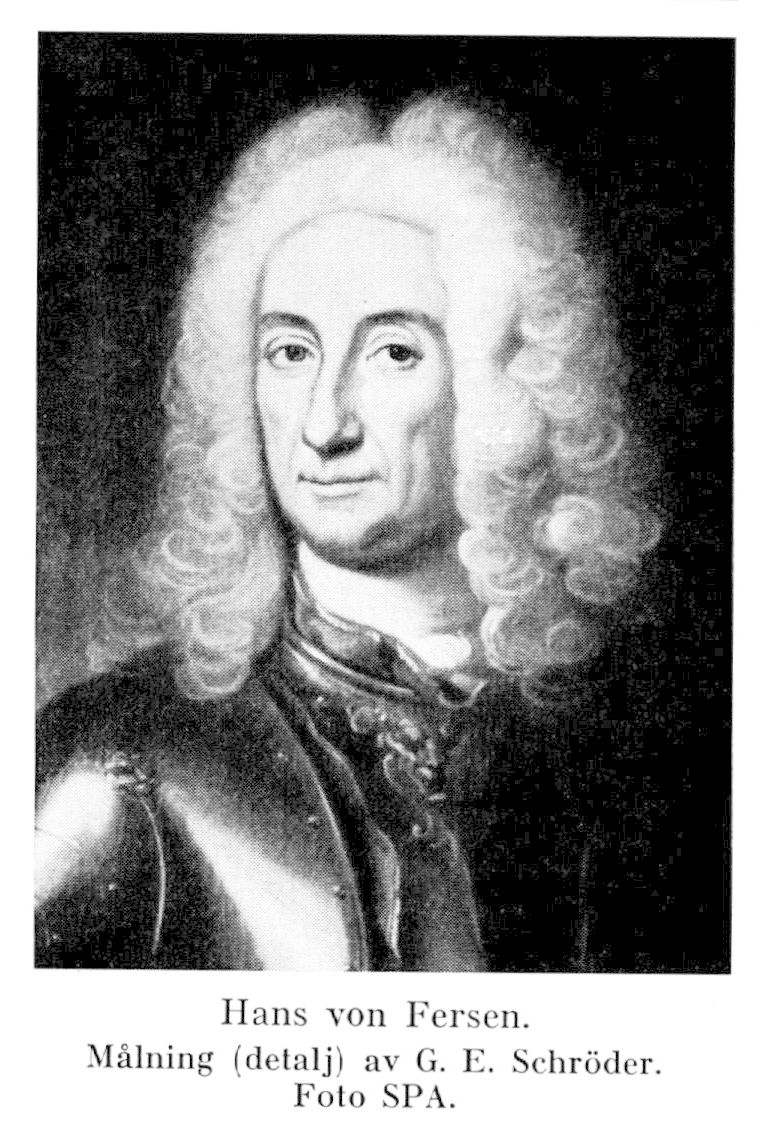 5. Hans von Fersen, son av F. 4, f. 2 mars 1683 i Reval (huvudbanér i Riddarholmskyrkan), d. 25 maj 1736 i Stockholm (Jak.). Volontär vid Västerbottens reg. 1700; wachtmeister vid hertig Fredrik IV:s av Holstein-Gottorp drabantkår och kammarjunkare hos hertigen 1701; löjtnant vid Änkedrottningens livreg. till fot i Pommern 1 juli 1703; kapten där 15 mars (ej maj) 1705; major vid Norra skånska kavallerireg. 5 febr. 1710; generaladjutant vid bohuslänska armén (västgötaarmén) 15 febr. 1711; överste vid konung Stanislaws av Polen drabanter 10 juni s.å.; chef för Upplands (ej Skånska) ståndsdragonreg. 29 jan. 1712 (Defensionskommissionens fullmakt, konfirm.-fullmakt 30 april s. å.); sekundöverste vid Västgöta kavallerireg. 15 mars 1714 (Defensionskomm:s fullm., erhöll icke konfirmation), kvarstod där till 25 nov.; åter chef för Upplands ståndsdragonreg. 30 april s.å.; generalmajor av kavalleriet 29 april 1719 (jfr s. 674); guvernör över Narva 5 jan. 1720, men tillträdde ej; generallöjtnant 26 jan. s.å.; president i Svea hovrätt 21 (ej 28) juni 1731. Led. av ridderskapet och adeln vid riksdagarna 1713–14 (sekr. utsk.), 1719 (sekr. utsk.), 1720, 1723, 1726–27, 1731 (sekr. utsk.) och 1734 (sekr. utsk., mindre sekr. deputationen).