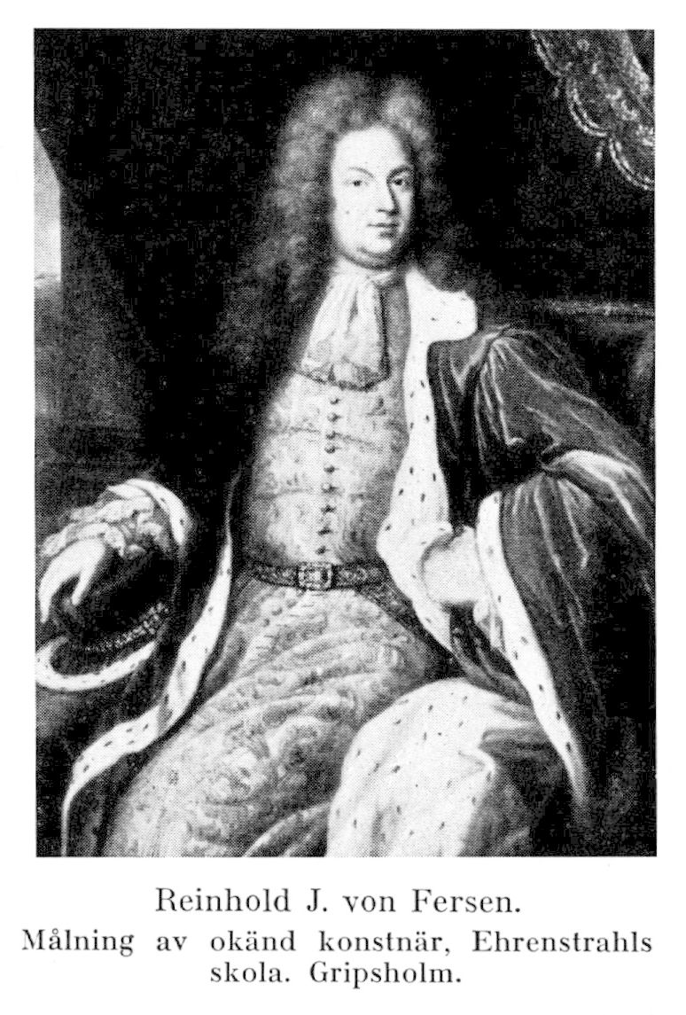 4. Reinhold Johan von Fersen, son av F. 2 i hans första gifte, d. 10 dec. 1716 i Stockholm. Löjtnant vid hertigens av Kurland reg. i holländsk tjänst april 1672; kapten vid ett nederländskt dragonreg. 5 juli 1674; major vid Indelta dragonreg. i östra Finland 4 maj 1675; överstelöjtnant vid Västerbottens reg. 22 juli 1677; överste för samma reg. 12 dec. 1684; överste för svenska livreg. till fot, tillika generalmajor och kommendant i Göteborg 13 okt. 1702; landshövding i Hallands län 23 febr. 1705; generallöjtnant av infanteriet och guvernör i Riga 12 okt. 1709 (tillträdde ej); guvernör i Wismar och överste för garnisonsreg. där 30 aug. 1710; k. råd 4 jan. 1711; greve 28 mars 1712 (grevebrevet utfärdat 23 mars 1719); generalfälttygmästare 5 juli 1712; direktör över försvarsverket i Finland våren 1713 (sedan k. fullmakt 30 okt. samt k. konfirm. 12 nov. s.å.); president i Svea hovrätt 15 sept. 1715.