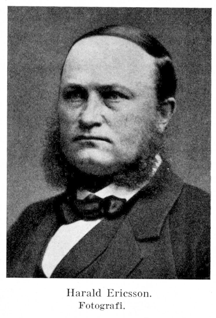 3. Harald Mauritz Ericsson, den föregåendes son, f. 30 aug. 1826 på Ramsbergs bruk, Ramsbergs sn (Ör. o. Vm.), d. 5 febr. 1894 i Stockholm. Elev vid Hillska skolan, Barnängen, Stockholm, 1838–44; student vid Uppsala univ. 30 maj 1845; kameralex. där 10 juni 1847; e. o. elev vid bergsskolan i Falun 19 jan. 1849–14 dec. 1850; anställd vid faderns bruk Ramsberg 1850; arrenderade Ramsbergs bruk 1858; brukspatron; ärvde del i Ramsbergs bruk vid faderns död 1859, utlöste sina medarvingar där 1863–66 och försålde sin andel i Liljendal; ökade genom olika köp Ramsbergs bruk och egendom; led. av Örebro läns landsting från 1863; direktör för Ramsbergs sparbank 1859–64 och 1868–84; led. av kyrko-och skolråd från 1859, ordf. i Ramsbergs kommunalnämnd från 1863, kommunalstämmans vice ordf. 1866 och ordf. från 1870; led. av riksdagens andra kammare 1867–69, 1879–81, av första kammaren 1884–94 (led. av lagutskottet 1885, av bankoutskottet 1887–94); statsrevisor 1888–92; led. av centralstyrelsen för Örebro enskilda bank från 1872. RVO 1876; RNO 1890.