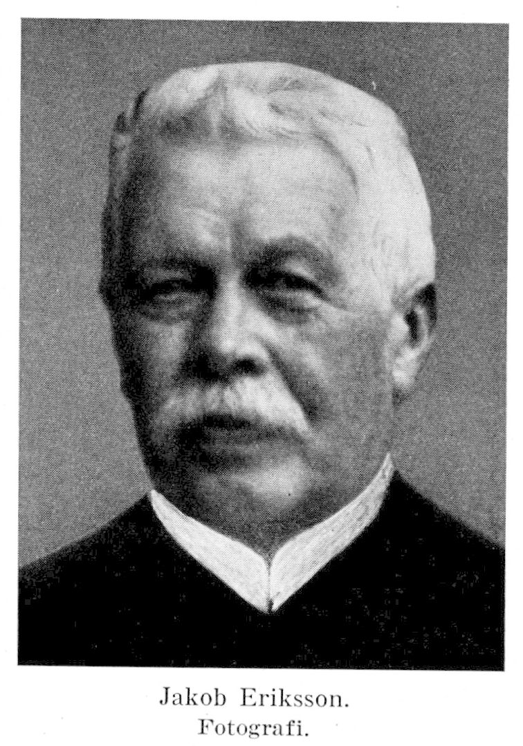 Jakob Eriksson, f. 30 sept. 1848 i Hyllie i Malmö (Limhamn), d. 26 april 1931 i Stockholm (Osc). Föräldrar: lantbrukaren Anders Eriksson och Eva Bergh. Mogenhetsex. vid högre allm. läroverket i Malmö 11 juni 1866; student vid Lunds univ. 16 sept. 1867; fil. kand. 31 maj 1872; genomgick provår i Lund 1872–73; extralärare vid Lunds h. a. läroverk vt. 1874 samt läsåret 1874–75; disp. pro gradu 9 maj 1874; fil. dr 3 juni s. å.; docent i botanik vid Lunds univ. 15 okt. 1874–18 okt. 1877; vik. adjunkt vid h. a. läroverket i Lund ht. 1875; adjunkt i botanik och zoologi samt svenska och tyska språken vid Nya elementarskolan i Stockholm 25 dec. 1875–31 mars 1886; förordnad till botanist vid Lantbruksakademiens agrikultur-kemiska försöksanstalt vid Experimentalfältet i Stockholm 15 dec. 1876; disputerade för lektorat vid Uppsala universitet 16 maj 1877; föreståndare med professors titel för den nyinrättade växtfysiologiska avdelningen vid Lantbruksakademiens experimentalfält 11 dec. 1885 (k. brev om föreståndarens professorsvärdighet 18 dec. s. å.); förordnad 28 sept. 1906 att från 1 jan. 1907 vara föreståndare för avdelningen för lantbruksbotanik vid Centralanstalten för försöksväsendet på jordbruksområdet; avsked 17 okt. 1913. LLA 1893; RNO 1897; LVA 1901 (preses 1915–16); LFS 1901; HedLLA 1913; KN02kl. 1914; innehade även utländsk orden och var ledamot av flera utländska akademier och sällskap, bl. a. danska Videnskabernes Selskab och l'Accademia dei Lincei i Rom.