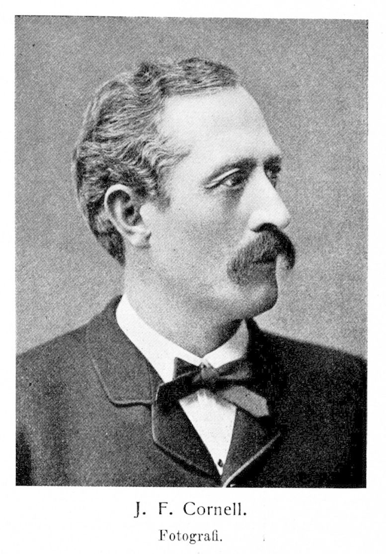 1. Johan Fredrik Cornell, f. 24 febr. 1837 i Tuna församling, Härnösands stift, d 27 aug. 1912 i Uppsala. Föräldrar: bruksförvaltaren Karl Fredrik Cornell och Sara Rodling. Elev vid läroverken i Sundsvall 1845—48, i Hudiksvall 1848—51 och i Härnösand 1851—55; student i Uppsala dec. 1855; vik. kollega vid Sundsvalls läroverk 1856—57; elev vid Dellens kanalbygge 1857—59; elev vid Mariebergs h. artilleriläroverk 1859; avlade ingenjörs-och officersexamen därstädes 1861; biträde hos distriktsadjutanten i norra väg- och vattenbyggnadsdistriktet R. Schough 1861—64 och 1866—70; praktiserande ingenjör från 1862; löjtnant vid väg- och vattenbyggnadskåren 29 apr. 1864; stationsingenjör vid Lule älvs kanaliseringsarbeten 1864—66;. bosatt i Sundsvall från 1869; chef för byggnader och flottning i Ljunga älv med bivattendrag 1870—95 och tillika generalentreprenör å flottningen i samma älv 1884—95, samt rådgivande ingenjör under år 1896; kapten i väg- och vattenbyggnadskåren 1 nov. 1878; ledamot av skolrådet i Sundsvall 1883—86; ledamot av drätselkammaren i Sundsvall och avdelningschef för gatu- och vägtillsyn samt renhållning 1883—86; ledamot av stadsfullmäktige i Sundsvall 1884—1910 och var därunder bl. a. ordförande 1898—1910 samt ledamot av styrelsen för borgarhemmet 1900—12 och av styrelsen för stadsparkföreningen i Sundsvall 1906; ledamot av styrelsen för Ekenstams fabriks-a.-b. 1887, av styrelsen för Sundsvalls murbruks-a.-b. till 1893 och av styrelsen för Tuna fabrlks-a.-b. 1892—96; ordförande-mästare i S:t Johanneslogen Bifrost i Sundsvall från 1893;. ledamot av styrelsen för Sundsvalls läroverk för flickor 1894—1906 och av kyrkorådet i Sundsvall 1895—1912; ledamot av kommittéerna för Västernorrlands läns deltagande i 1897 års Konst- och industriutställning i Stockholm 1895—19 sept. 1898 (ordförande 14 dec. 1895—1898) och för Industri- och slöjdutställningen i Gävle 1901 (ordförande); ledamot av styrelsen för Dalälvens sågverks a.-b. 10 juni 1896—21 juni 1906; major i väg- och vattenbyggnadskåren 19 nov. 1897; en av stiftarna av Alby elektrokemiska a.-b. 1897 och ledamot av dess styrelse 17 jan. 1898—2 maj 1901; ledamot av Västernorrlands läns landsting 1899—1911 och var därunder bl. a. ledamot av kommittén angående en kustbana genom nedre Norrland 20 sept. 1899—22 aug. 1900, av kommunikationsutskottet 1900—01 och av styrelsen för Sundsvalls lasarett från 17 sept. 1900, landstingets ordförande 1902—11 samt ledamot av obligationslånekommittéerna 23 sept. 1904—14 aug. 1905 och 22 sept. 1905—24 aug. 1909; ledamot av styrelsen för a.-b. Sundsvalls handelsbank från 1902; ordförande i skogsvårdsstyrelsen för Västernorrlands län 1902—06; erhöll avsked ur väg- och vattenbyggnadskåren 30 okt. 1903; en av stiftarna av Ostkustbanans a.-b. 1904 och ledamot av dess styrelse 27 febr. 1906. Ordförande i Föreningen för Sundsvalls försvar åt sjösidan från dess stiftande; ledamot av styrelserna i flera barmhärtighets- och välgörenhetsinrättningar. RVO 1884; RNO 1897; hedersledamot i Flottningschefsföreningen 1903; KVO2kl 1903; KVO1kl 1908; hedersledamot av Norrlands nation i Uppsala 1912.