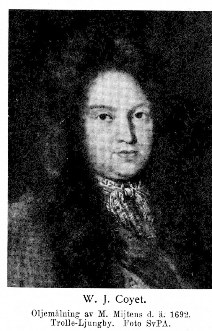 2. Wilhelm Julius Coyet, den föregåendes son, f. 14 apr. 1647 i Stockholm, d. 27 apr. 1709 därstädes. Student i Uppsala juni 1654; företog en utrikes studieresa och blev därunder bl. a. student i Heidelberg 17 okt. 1661. Kanslijunkare 12 okt. 1666; åtföljde ambassaden till England och Holland 1666—67; master of arts i Oxford 17 apr. 1667; bevistade riksdagarna 1668—80, 1686 och 1689 samt var därunder bl. a. ledamot av adelns besvärsutskott 1689 och av riddarhusutskottet 1689; sekreterare i justitierevisionen 8 apr. 1673 (revers 11 apr. 1673); ledamot av kommissionen angående förfarandet vid trolldomsrannsakningarna i Norrland 16 juni 1675, av kommissorialrätten i Stockholm angående trolldomsväsendet 3 juni 1676—3 juli 1677 (ordförande 26 juni 1676—3 juli 1677), av kommissionen över ridderskapets och adelns i Ingermanland besvär rörande revisionen och reduktionen därstädes 30 jan. 1680—23 febr. 1681 samt av kommissorialrätten (konsistorium mixtum) i superintendenten J. H. Oldekops sak 25 apr. 1681 (jmfr K. brev 15 mars 1681)—10 febr. 1682; e. o. envoyé i Köpenhamn 31 maj 1682—juli 1684 (rappellerad 26 apr.); lagman i Skåne 10 sept. 1684 och tillika i Blekinge 4 juli. 1690; ledamot av kommissionen angående reduktionsverket i Pommern 8 mars 1692—1696 (jmfr K. brev 16 juli och 23 dec. 1693 samt 8 mars 1694); kansler i Pommern 7 nov. 1692; v. president i tribunalet i Wismar 17 juni 1693; deltog i taxation och undersökning av inkomsterna av de kungliga amten i Pommern och vid Wismar 1696—1705 (enligt uppdrag 29 jan. och 29 apr. 1696, 14 okt. 1697); ledamot av kommissionen för undersökning av myntväsendet i Pommern och generalguvernören Nils Bielkes förvaltning 31 mars 1698—4 nov. 1699; hovkansler 21 mars 1705; friherre 22 dec. 1706; ledamot av kommissionen över fältpredikanten Th. Crüger i Riga 8 apr. 1707—13 maj 1708; kommissarie vid alliansförhandlingar med Fredrik Wilhelm av Mecklenburg-Schwerin 24 juli 1707.