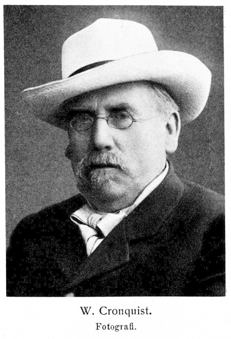 Cronquist, Albert Werner, f. 22 juni 1846 i Malmö, d. 22 nov. 1910 i Stocksund, Danderyds församling. Föräldrar: boktryckaren och litteratören Johannes Cronquist och Anna Kristina Lundgren. Elev vid Landskrona 1. elementarläroverk 31 jan. 1857—vt. 1860, vid Malmö tekniska elementarskola ht. 1860—15 juni 1863 och vid teknologiska institutet 5 sept. 1863—7 juni 1866; företog, företrädesvis med offentligt understöd eller i enskilt uppdrag, ett stort antal utrikes resor, bl. a. till världsutställningen i Paris 1867 och flera senare utställningar, som Vetenskapsakademiens bysantinska stipendiat till Danmark, Tyskland, Holland, Belgien och England apr.—dec. 1871 samt till petroleumfälten vid Kaspiska havet 1904. Ledamot av teknologföreningen T. I. (från 1887 Svenska teknologföreningen) 5 dec. 1863 samt var där bl. a. ordförande ht. 1868, vt. 1870—1873 och 1878—79 samt v. ordförande 1875—77; biblioteksbiträde vid teknologiska institutet 1864—66 och 1867—68; biträde vid allmänna industriutställningen i Stockholm juni—dec. 1866 och vid världsutställningen i Paris 1867; kemist och amanuens vid Sveriges geologiska undersökning jan. 1867—30 mars 1871; assistent i kemi vid slöjdskolan i Stockholm 1867; lärare i kemi och varukännedom vid privatläroverket Lärokurs för medborgerlig bildning 1 dec. 1867—1 apr. 1868; konsulterande ingenjör och kemist i Stockholm från 1868; överlärare i varukännedom vid slöjdskolan i Stockholm 22 sept.—okt. 1868; justerare av brännvinsprovningsinstrument 6 okt. 1869; medlem av nämnden för utställningen i Moskva 1871; medarbetare i och tidvis ledamot av redaktionskommittén för Teknisk tidskrift 1872—90; uppsatte 1872 en kemisk-teknisk byrå i Stockholm och innehade densamma till 1884; lärare i kemi, mineralogi och geologi i lantmäterikursen 1872— 1908; överlärare i kemi vid Stockholms lyceum sept. 1873 —maj 1875; inhämtade på uppdrag av järnkontorets fullmäktige i Frankrike kännedom om Bouquet's metod för tillverkning av bränntorv 1874; kontrollant över eldfarliga oljor 27 dec. 1875 (förlängt 24 sept. 1885); ledamot av slakthuskommittén i Stockholm 1876—79; förste handelskemist i Stockholm 1 jan. 1877—1 nov. 1884; agrikulturkemist hos Stockholms, Uppsala, Södermanlands och Västmanlands läns hushållningssällskap 1877—83 (85); konsulterande ingenjör hos Kropps a.-b. från 1878; ledamot av Slöjdföreningens sprängämneskommitté 5 febr. 1879—4 maj 1880; verkställde för Södermanlands läns hushållningssällskap teknisk-ekonomisk undersökning av vissa råämnesförekomster 1879 —82; prisdomare vid industriutställningarna i Malmö 1881 och 1896, i Köpenhamn 1888 (dessutom ordförande i gruppen för kemisk industri), i Göteborg 1891, i Stockholm 1897, i Gävle 1901, i Hälsingborg 1903 och i Norrköping 1906; erhöll K. M:ts uppdrag att inspektera krutbruk och sprängämnesfabriker m. m. 12 maj 1882; ledamot av Publicistklubben 1883; initiativtagare till bildandet av Kemistsamfundet 1883; avgav på uppdrag av chefen för civildepartementet förslag till författning angående tillverkning, vård och försäljning av sprängämnen 1 maj 1883; kemist vid K. flottans mindepartement vid Stockholms station 15 mars 1883—1890 och vid K. flottan 1890—1901 samt utförde dessutom enligt särskilda uppdrag åtskilliga större undersökningar för flottan; lärare i sprängämneslära vid minskolan från 1 jan. 1884 samt tillika vid sjökrigshögskolan från 1898 till denna befattnings indragning 1904; utgav Svenska bryggareföreningens månadsblad 1886—87 (erhöll utgivningsbevis 19 apr. 1886); erhöll uppdrag att som sakkunnig deltaga i tullkommitténs arbeten 3 dec. 1889; ledamot av sprängämneskommittén 29 apr. 1892—1 sept. 1894 och av kommittén, angående eldfarliga vätskor 1893; erhöll professors titel 14 apr. 1893; ledamot av Publicistklubbens styrelse febr. 1894—febr. 1895 och febr. 1896—1898 (v. ordförande 1896—97, ordförande febr.— sept. 1898); inspektör för sprängämnestillverkningen 19 okt. 1894 samt tillika för explosiva, varor 19 nov. 1897; ledamot av kommittén angående förvaring av karbid och acetylen 25 sept. 1897— 3 apr. 1900; Sveriges ombud vid petroleumkongresserna i Liège 1905 och i Bukarest 1907; tf. yrkesinspektör under 1906 9 juni 1905; erhöll uppdrag av chefen för civildepartementet att verkställa utredning angående förvaring och transport av kiseljärn 20 sept. 1907; sakkunnig angående revision av förordningen rörande explosiva varor av 19 nov. 1897 m. m. 9 okt. 1908--febr. 1910. Erhöll medaljer från utställningarna i Stockholm 1866, Mariestad 1874, Malmö 1881 m. fl. samt från Uppsala läns och Göteborgs och Bohus läns hushållningssällskap, Polhemsmedaljen i guld av Ingeniörsföreningen 1878, hedersgåva från Teknologföreningen 1881 samt diplom vid utställningen i Köpenhamn 1888; KorrespLÖS 1892; RNO 1897; LKrVA 1901; var dessutom ledamot av utländska lärda sällskap.