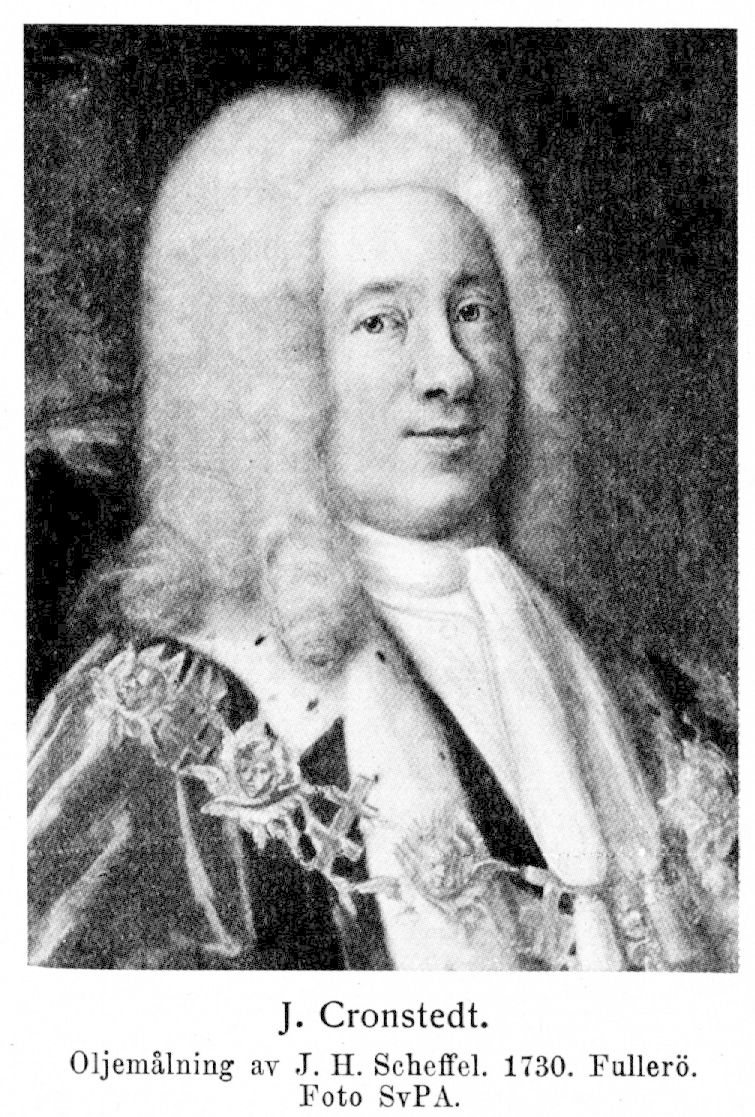 1. Jacob Cronstedt, före adlandet Olderman, greve och friherre till Fullerö och Almö i Barkarö socken, f. 23 nov. 1668 i Stockholm, d. 21 febr. 1751 därstädes. Föräldrar: handelsmannen och föreståndaren för tyska kyrkan i Stockholm Anders Olderman och Anna Gerdes. Student i Uppsala 3 mars 1679 (avlade studenteden 12 dec. 1695); adlad och adopterad på sin styvfaders Mårten Cronstedts adliga namn och nummer 18 mars 1693; bevistade riksdagarna 1693, 1713–14, 1720, 1723 och 1726–27 och var därunder bl. a. ledamot av sekreta utskottet 1713–14,: 1723 och 1726–27, av kontributionsdeputationen 1720, av deputationen angående kommerssakerna 1720 och av bankodeputationen 1723; företog en utrikes studieresa 1697–1701; hovjunkare 16 maj 1705; e. o. kammarherre 29 okt. 1712; ledamot av kommissionen för besiktning av stuterierna vid Kungsör och Strömsholm 20 nov.–23 dec. 1713; kammarherre 31 juli 1714; ordningsman i Uppsala län 29 juli 1718; v. landshövding därstädes 1719; landshövding i Kronobergs län 28 apr. 1719; friherre 23 maj 1719; riksråd 3 aug. 1727; ledamot av myntkommissionen 19 sept. 1727–febr. 1744 (ordförande), av deputerade angående hållskjutsen vid Fittja gästgivaregård 17 mars–10 sept. 1730 och av deputerade för granskning av landshövding G. Palmfelts och kommerserådet J. von Hökerstedts projekt rörande statsbristens fyllande 15 apr.–15 dec. 1730; greve 14 juni 1731; ledamot av deputerade för överseende av 1733 års förordning om mått och vikt 15 mars–14 maj 1737 och av kommissionen för överseende av tull- och accistaxorna 21 juli 1738–11 maj 1745. Hedersledamot av Vetenskapssocieteten i Uppsala 1729; KNO 1748; R o K av KMO 1748.
