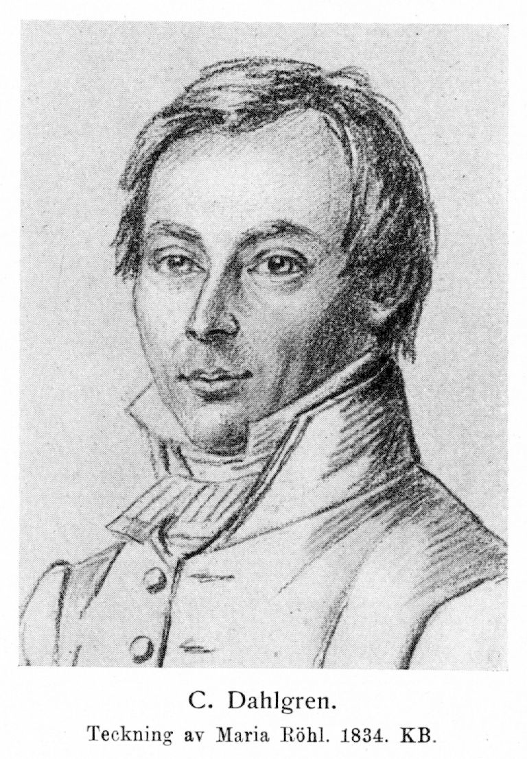 Dahlgren, Carl Fredric, f. 20 juni 1791 på Stens bruk, Kvillinge socken, d. 1 maj 1844 i Stockholm. Föräldrar: bruksinspektören Sven Dahlgren och Elisabet Lundgren. Inskrevs vid Linköpings trivialskola 25 sept. 1801; elev vid Linköpings gymnasium våren 1805; student i Uppsala 14 okt. 1809; idkade filosofiska och teologiska studier vid universitetet därstädes ht. 1809, ht. 1811 och ht. 1812—vt. 1813; avlade prästexamen i Linköping 14 juni 1815; prästvigd i Stockholm av biskopen i Linköping 22 juni 1815. Informator i Östergötland och Västmanland våren 1810—sommaren 1811 och våren 1812 samt hos löjtnanten och stallmästaren Olof Malmerfelt på Österby i Vallby socken våren 1813; medarbetare i Phosphoros, Nya extra posten, Heimdall och Freja; lärare vid regementspastor Lars Afzelius', från 1815 hovpredikanten A. A. Afzelius' privatskola i Stockholm 1814—18; komministersadjunkt vid Ladugårdslands församling 11 juli 1815 och pastorsadjunkt därstädes 20 aug. 1816; innehade egen privatskola i Stockholm 1818—22; v. pastor i Ladugårdslands församling 2 maj 1820—30 apr. 1822; ånyo pastorsadjunkt därstädes 30 apr. 1822—30 apr. 1825; avlade pastoralexamen i Linköping 24 sept. 1823; komminister vid Ladugårdslands församling 14 sept. 1824 (tilltr. 1 maj 1825); erhöll 30 nov. 1825 rätt att räkna dubbla tjänsteår för tiden 1 maj 1819— 30 apr. 1822; medutgivare av Kometen 1 okt. 1825—29 dec. 1827; riksdagsman i prästeståndet för Stockholms komministrar 9 jan, 1829—1830, 1834—35 och 1840—41 och var därunder bl. a. ledamot av allmänna besvärs- och ekonomiutskottet vid samtliga dessa riksdagar, av förstärkt statsutskott 1834—35 och 1840 —41, av förstärkt konstitutionsutskott 1834—35 och av förstärkt lagutskott 1834—35; komminister vid Storkyrkoförsamlingen 10 mars 1829; fullmäktig i riksgäldskontoret från 1834; sekreterare i Samfundet pro fide et christianismo 1837; utgivare av Djurkretsen 1841 (erhöll utgivningsbevis 6 okt.). Stiftade Manhemsförbundet tillsammans med A. J. Cnattingius 1815; deltog i stiftandet av Gröna rutan 1816, Bellmanska sällskapet 1824 och Aganippiska brunnssällskapet hösten 1839; erhöll pris av Vetenskaps- och Vitterhets samhället i Göteborg 1818 och Lundbladska priset av Svenska akademien 1831; ledamot av sällskapet Par Bricole.