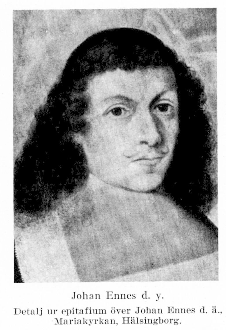 1. Johan Ennes d. y., f. omkr. 1640, säkerligen i Hälsingborg, d. 1706 (själaringning 9 mars) i Landskrona. Föräldrar: handlanden Johan Ennes d. ä. och Catharina Hoffman. Enligt uppgift verksam först i Helsingör; borgare och vinhandlande samt skeppsredare i Hälsingborg från åtminstone 1665; k. privilegium att ensam hålla öppen källare i Hälsingborg och där försälja vin och främmande drycker 23 aug. 1673; bosatt i Landskrona från åtminstone slutet av 1679; privilegium på inrättande av två värdshus i Hälsingborg omkr. 1680.