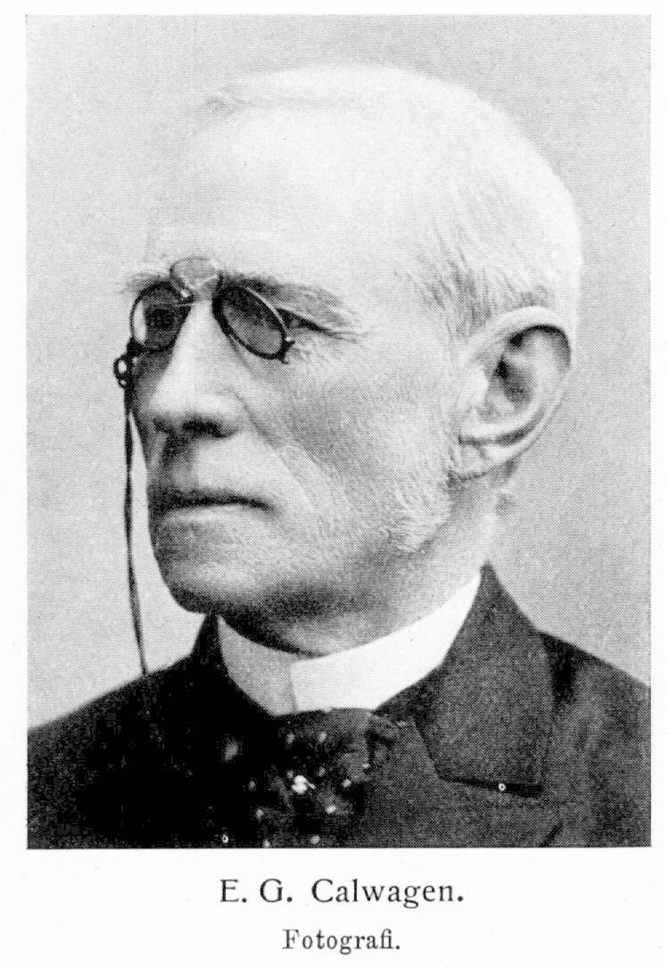 Calwagen, Ernst Gottfried, f. 7 mars 1829 i Härnösand, d. 8 nov. 1906 i Uppsala. Föräldrar: v. pastorn i Härnösand, sedermera kyrkoherden i Neder-Luleå pastorat, kontraksprosten Per Calwagen och Kristina Margareta Norrbom. Inskriven vid Uppsala universitet 12 okt. 1847; avlade studentexamen därstädes 3 dec. 1847; disp. 15 okt. 1853 (Om undervisning i modersmålet; pres. T. F. Grafström); fil. kand. 30 mars 1854; disp. 1 juni 1854 (Kritisk skärskådning af Schillers äldsta lyrik; pres. K. V. Bottiger); fil. doktor 9 juni 1854; företog studieresor till Tyskland och England ht. 1866 och som innehavare av det större resestipendiet till Tyskland och Frankrike ht. 1883–vt. 1884. Dels vik. kollega, dels duplikant vid h. elementarläroverket i Härnösand ht. 1854–ht. 1856; kollega vid Luleå skola 23 jan. 1856; e. lärare vid nya elementarskolan i Stockholm ht. 1859; adjunkt därstädes 29 dec. 1859; huvudlärare i tyska 30 nov. 1870; ledamot av kommittén angående likformig uppställning av grammatiska läroböcker 25 okt. 1878–22 aug. 1881; lektor i tyska och engelska vid nya elementarskolan 24 aug. 1892; erhöll avsked från denna befattning 24 aug. 1894 fr. o. m. 1 sept. (pension enligt K. brev 6 juli 1894); ledamot av nya elementarskolans direktion ht. 1896–vt. 1901; bosatt i Hedemora från hösten 1901 och i Uppsala från okt. 1903. RVO 1883; RNO 1894.