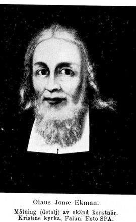 Ekman, Olaus Jonae, f. 1639 i Fellingsbro (Vm.), d. 23 jan. 1713 i Falun. Föräldrarna voro bondfolk. Skolstudier i Arboga och Västerås; student vid Uppsala univ. 18 febr. 1663; två disp. 1672; fil. magister 12 dec. s. å.; prästvigd 22 febr. 1675 i Västerås till adjunkt vid Storkyrkoförsamlingen i Stockholm; efter en tid hovpredikant hos riksrådet och fältmarskalken frih. Henrik Horn; fältsuperintendent i Livland; domprost i Strängnäs 1681, tilltr. 1682; preses på prästmötet i Strängnäs 1685; kyrkoherde i Falun 15 febr. 1688, tilltr. 1689; utnämnd superintendent i Visby 1692 men undanbad sig denna befordran, och återställde fullmakten.