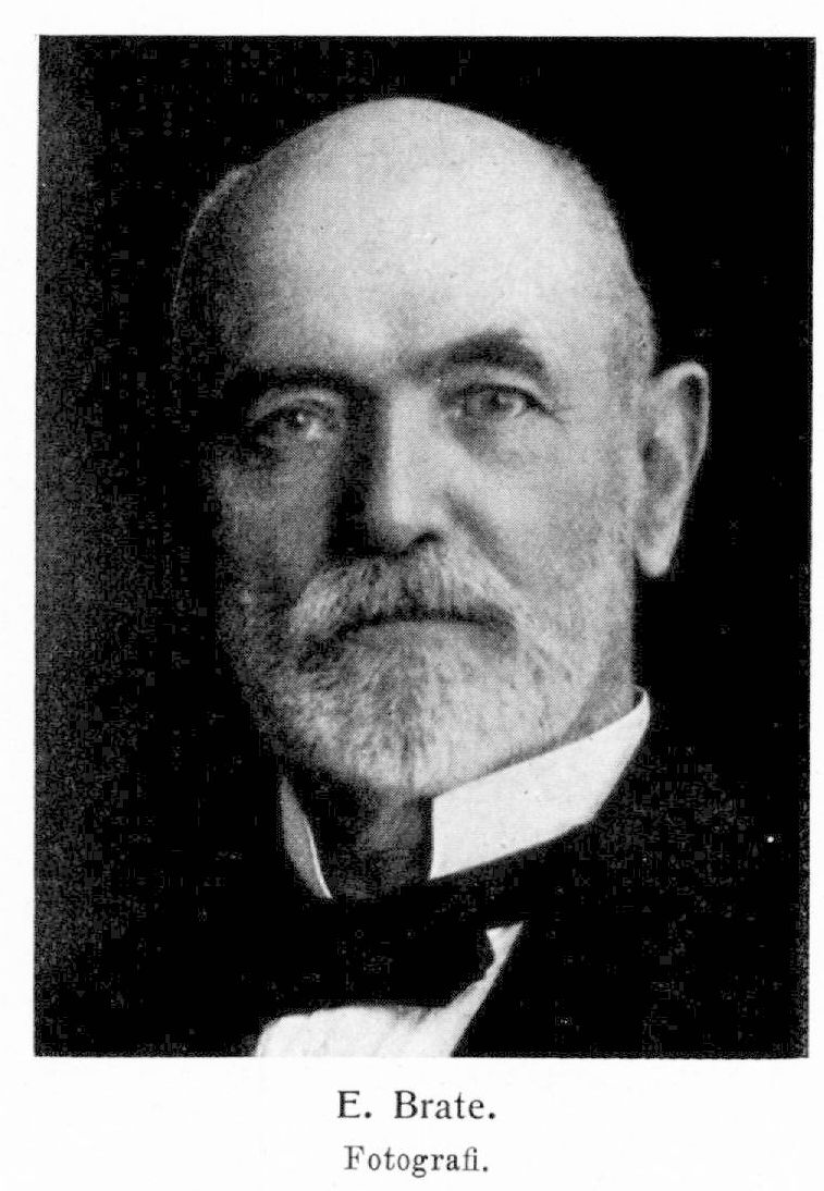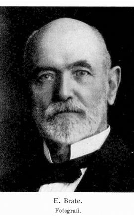 Brate, Erik, f. 13 juni 1857 i Bråfors i Norbergs socken, d 1 apr. 1924 i Stockholm. Föräldrar: bergsmannen Anders Eriksson och Kristina Mattsdotter. Elev vid Västerås h. elementarläroverk ht, 1868; avlade mogenhetsexamen därstädes 27 maj 1876; student i Uppsala ht. s. å.; fil. kand. 12 dec. 1879; studerade vid Strassburgs universitet sept. 1882−maj 1883; fil. lic. 15 maj 1884; disp. 29 maj s. å.; fil. doktor 31 maj s. å. Genomgick provår vid Södermalms h. allmänna läroverk ht. 1880−vt. 1881; docent i forngermanska språk 24 sept. 1884; föreståndare för filologiska seminariets avdelning för nordiska språk vt. 1885−vt. 1887; tf. e. o. professor i svenska språket ht. 1885−vt. 1887; lärare vid Z. Krooks och M. Uppströms h. elementarläroverk för flickor i Uppsala ht. 1885−vt. 1887; lektor vid Södermalms h. allmänna läroverk 25 maj 1887 (K. brev 23 sept); tillika läroverkets bibliotekarie; erhöll avsked 12 maj 1922. RNO 1903; LHA 1904.