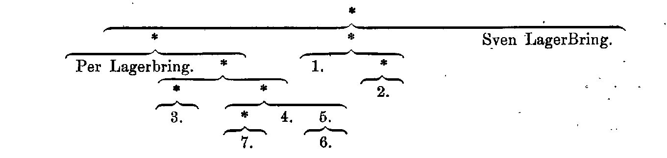 Till A) den äldsta släktgrenen hörde kyrkoherden Olof B:s söner a) krigsrådet Per B. (f. 1733, d. 1799), vilken först erhöll tyskt adelskap med namnet von Bring och därefter 12 sept. 1772 adlades Lagerbring och adopterades av sin farbroder, professor Sven LagerBring, och vars son generallöjtnanten Gustaf Olof Lagerbring (f. 1769, d. 1847) upphöjdes i friherrligt stånd 26 jan. 1815, samt b) kyrkoherden i Brönnestad, sedan i Malmö, prosten Ebbe B. (f. 1733, d. 1804), som var farfader till biskopen Ebbe Gustaf B. (se nedan 3), vars son rådmannen i Uppsala Sven Casper B. (f. 1842, d. 1931) är känd för sin översättning av Dantes Divina commedia (delvis 1905, fullst. 1913), som belönats med Letterstedtska priset. Kusiner till biskop Ebbe Gustav B. voro kronolänsmannen Ebbe Lars B. (f. 1820, d. 1892), fader till förste bibliotekarien Samuel Ebbe B. (se nedan 7), professorn Sven Libert B. (se nedan 4) och hovpredikanten och föreståndaren för diakonissanstalten å Ersta Johan Christopher B. (se nedan 5), fader till domprosten Johan Magnus Fredrik Theophil B. (se nedan 6). Till B) den andra släktgrenen, kyrkoherden Jöns B: s ättlingar, hörde dennes söner professorn Erland Samuel B. (se nedan 1) och kyrkoherden i Össjö, prosten Olof B. (f. 1742, d. 1811), fader till professorn Ebbe Samuel B. (se nedan 2).