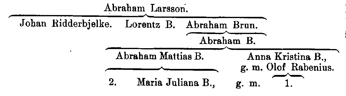 Bruncrona, släkt, härstammande från en länsman Lars, som levde i slutet av 1500- och början av 1600-talet. Hans son, kaptenen Abraham Larsson, blev fader till tre söner, som kallade sig Brun, nämligen a) kaptenen Johan Brun (f. 1638, d. 1699), adlad Ridderbjelke 19 aug. 1695, b) överstelöjtnanten Lorentz Brun (f. omkr. 1650, d.1729), som adlades med namnet Bruncrona 30 sept. 1726 men själv slöt sin ättegren, och c) råd- och handelsmannen i Göteborg Abraham Brun (d. 1740), vars son sekreteraren Abraham Brun (f. 1693, d. 1739) adlades tillsammans med farbrodern Lorentz 30 sept. 1726 och blev stamfader för den ännu fortlevande ättegrenen. Hans son, majoren Abraham Matthias B. (f. 1737, d. 1816), far till kanslirådet Gustaf Adolph B. (se nedan 2), adopterade 1799 sin systerson och måg, professor Olof Rabenius' son Nils Abraham Rabbe (se nedan 1), vilken därvid adlades 16 nov. s. å. men vars ättegren utdog redan med hans son översten Olof Abraham B. (f. 1802, d. 1859).