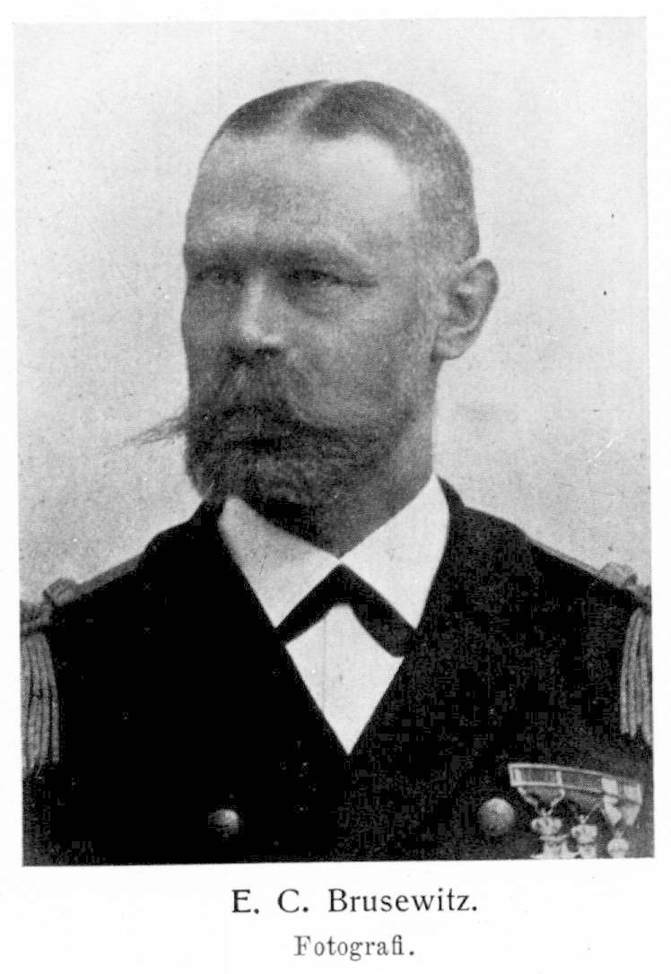 3. Eric Cornelius Brusewitz, den föregåendes kusin, f. 1 dec. 1844 i Kalvs prästgård, d. 21 juni 1919 på Sjötorp i Lyrestads socken. Föräldrar: expeditionssekreteraren Karl Gustav Brusewitz och Hanna Elisabet Rahmn. Kadett vid krigsakademien å Karlberg 2 maj 1861; deltog i sjöexpeditionerna 1864–66; korpral 1865; utexaminerad från Karlberg 11 maj 1867; underlöjtnant vid flottan 17 maj s. å. (med tur från 11 maj s. å.); idkade handelssjöfart tretton månader 1868–69; erhöll underlöjtnants lön andra klass 16 apr. 1870 och första klass 8 nov. 1872; genomgick Gymnastiska centralinstitutet 1873–75; löjtnant vid flottan 5 febr. 1875; kompaniofficer vid första skeppsgossekompaniet 1876; chef på briggen Falken 1877; tjänstgjorde vid skeppsgossekåren 1877–78; sekond på Ishavsexpeditionens fartyg Vega 1878–80; kadettofficer vid sjökrigsskolan 1880–82; kapten i flottan 14 sept. 1883; bevistade 1883–84 under sex månader i London hos T. Nordenfelt skjutningar med mindre, för bruk i Östersjön avsedda artilleripjäser; erhöll kaptens lön andra klass 25 apr. 1884; tjänstgjorde vid exercisskolan s. å.–1885; chef för Södra Möre första, andra och tredje båtsmanskompanier 1885–88; kompanichef å skolfartyget Stockholm 1887; erhöll kaptens lön första klass 16 dec. s. å.; chef för andra skeppsgossekompaniet 1888–90; äldste instruktionsofficer i exercisskolan i Karlskrona 1890–92; kommendörkapten av andra graden 212 jan. 1892 (med lön från 22 mars s. å.); tf. chef för exercisskolan i Karlskrona s. å,; tf. kommendant å sjöfästningarna vid Karlskrona s. å.; ordförande i antagningskommissionen för värvat manskap vid Karlskrona station 1893 och 1894; tf. chef för skeppsgossekåren 1893; avdelningschef ombord å logementsfartyget Stockholm 1893 och 1894; avdelningschef ombord för skeppsgosseavdelningen 1894 och 1895; chef för exercis- och underbefälsskolorna 1894, för skeppsgossekåren 1894–96 och för underbefäls- och exercisskolorna i Karlskrona 1896–97; kommendörkapten av första graden 27 juni 1896 (erhöll lön från 7 aug. s. cl); ordförande i förvaltningsdirektionen i Karlskrona 1898; efter stationstjänstgöring 1898–99, bl. a. som tf. kommendant vid Stockholms och Karlskrona stationer, kommendant vid Stockholms station (från 1900 chef för underofficers- och sjömanskåren vid Stockholms station) 1899–1901; ordförande i förvaltningsdirektionen därstädes 1900–01; erhöll avsked från kommendörkaptensbefattningen 30 dec. 1901; sjörullföringsområdesbefälhavare i Stockholm 1 jan. 1902–23 mars 1903; erhöll avsked ur krigstjänsten 1 okt. 1903; slussinspektör vid Göta kanal med station vid Sjötorp från 1903. RVO 1880; erhöll Vegamedaljen s. å.; LÖS s. å.; RSO 1887; innehade dessutom flera utländska ordnar.