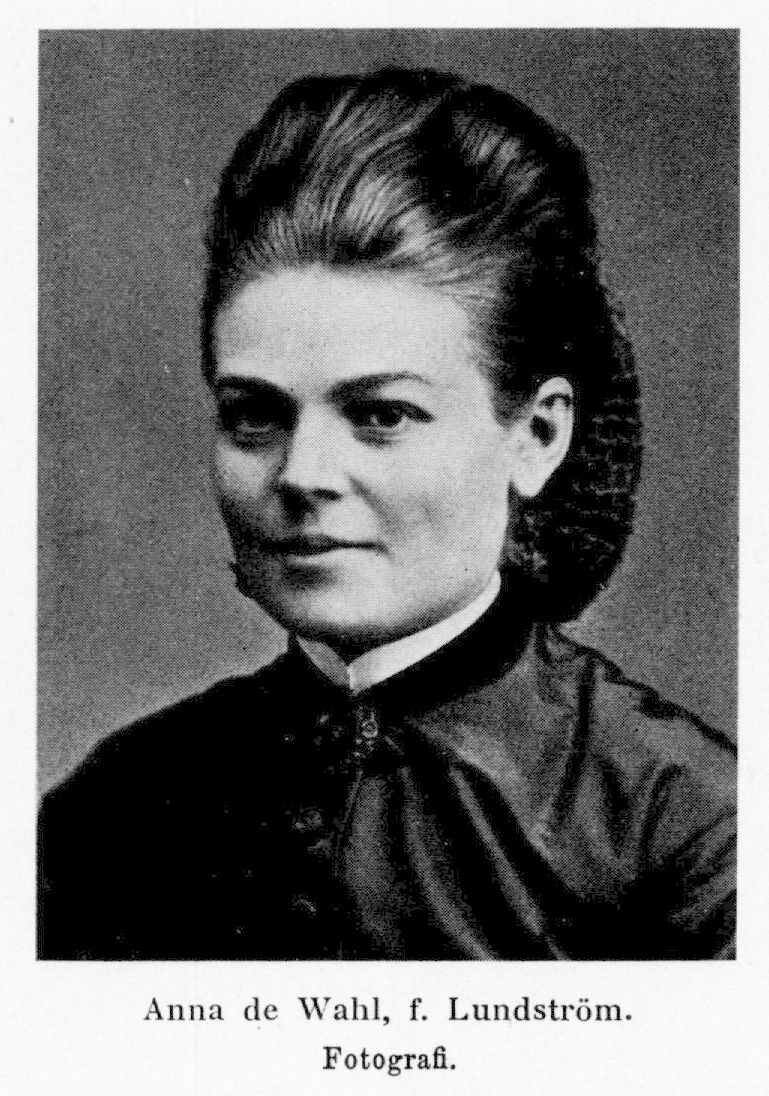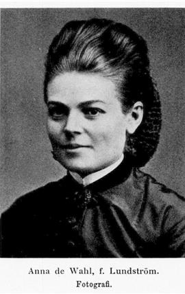D:s hustru var skådespelerskan Anna de Wahl, f. 25 maj 1844 i Väddö (Sth.), d. 18 maj 1889 i Södertälje. Föräldrar: kyrkvakten i Adolf Fredriks kyrka i Stockholm Anders Lundström och Anna Pousette. Anna Lundström upptogs tidigt som adoptivdotter av en släkting, båtsman Frimodig i Roslagen. Redan vid elva års ålder vann hon inträde vid Selanderska elevteatern och erhöll där sin utbildning och första anställning. I detta sällskap var hon engagerad till 1866, då hon övergick till Södra teatern. Från 1872 och fram till 1884 spelade hon omväxlande i Stockholm vid Mindre, Södra och Nya teatrarna samt i Göteborg vid Nya teatern. Åren 1884 och 1885 var hon engagerad vid Svenska teatern i Helsingfors samt 1886 och 1887 vid Vasateatern i Stockholm.