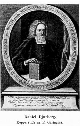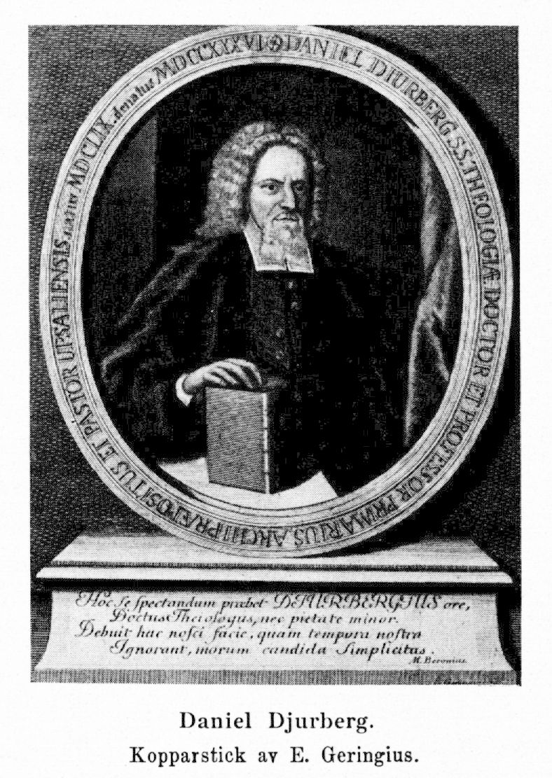 1. Daniel Djurberg, f. 5 april 1659 i Söderhamn, d. 10 april 1736 i Uppsala. Föräldrar: borgmästaren Peder Jönsson Tvärre och Justina Danielsdotter. Inskrevs 12 mars 1668 i Hudiksvalls trivialskola, 13 febr. 1671 i Gävle trivialskola; upptogs 3 okt. 1674 i Gävle gymnasium; student i Uppsala 10 febr. 1677 under namnet Daniel P. Bergius; K. stipendiat 1682; disp. 20 febr. 1684; ex. theologicum 16 maj 1684; ex. philosophicum 6 maj 1685; disp. pro gradu 18 nov. 1685; fil. magister 10 dec. 1685; disp. i teologi 24 mars 1688; erhöll 25 okt. 1688 K. resestipendium och anträdde sommaren 1689 en mer än treårig utrikes studieresa till Tyskland (stannade länge i Hamburg, Helmstädt, Wittenberg, Leipzig [1691], Dresden, Prag och Sulzbach), Holland, London, Oxford (student vid dess univ. 1692) och över Holland och Danmark åter till Stockholm okt. 1692; teol. adjunkt vid Uppsala univ. 14 okt. 1692; notarie vid Uppsala domkapitel 16 aug. 1693; avböjde kallelse till ord. professur i teologi i Lund i dec. s. å.; prebendekyrkoherde i Hagby och Ramsta 30 jan. 1694; prästvigd 1 juni s. å.; kontraktsprost 17 juni s. å.; tredje teol. professor och kyrkoherde i Danmark 8 febr. 1698 med bibehållande av prostämbetet över Hagby och Hagunda kontrakt till 1725; inspektor för Hälsinge nation 1698; andre teol. professor 1703; disp. för teol. doktorsgrad 30 april 1704; teol. doktor 1 juni 1705; domprost och förste teol. professor 31 okt. 1724; rektor magnificus vt. 1702, vt. 1706, vt. 1716 och vt. 1725; uppfördes i tredje rummet till ärkebiskop 1730.