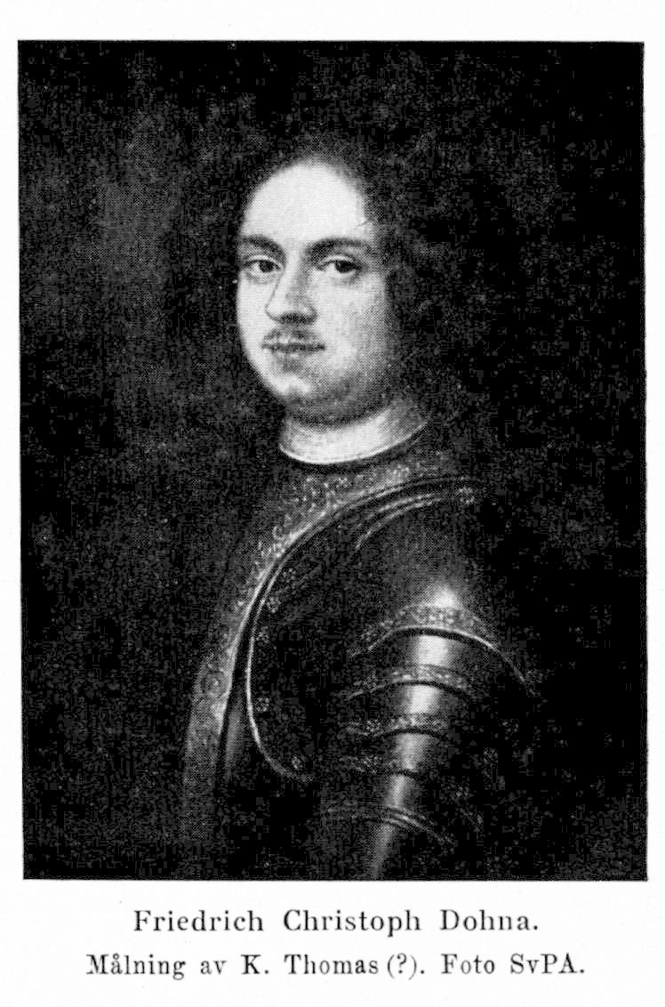 Friedrich Christoph Dohna, https://sok.riksarkivet.se/sbl/artikel/17587, Svenskt biografiskt lexikon (art av G. Jacobson.), hämtad 2026-04-02.