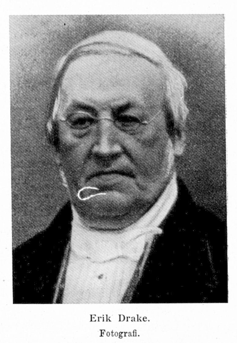7. Erik Drake, brorsons sonson till D. 6, f. 8 jan. 1788 på Föllingsö, Kisa sn (Ög.), d. 9 juni 1870 i Stockholm.- Föräldrar: kaptenen Leonard Fredrik Drake och Emerentia Elisabet Stockenström. Student vid Uppsala univ. 2 okt. 1804; tjänstgjorde vid observatoriet i Uppsala 1808—10; kansliex. vid Uppsala univ.; uppges ha varit e. o. kanslist i K. kansliet; associé i Musikaliska akademien 1818; biträdande lärare i musikens teori vid Musikaliska akademiens undervisningsanstalt sedan vt. 1826; professor i samma ämne där 2 juni 1830; inspektor för undervisningen där 29 okt. 1834; akademiens sekreterare 30 jan. 1841; tillika bibliotekarie med lön där 1849; avsked från samtliga befattningar 28 dec. 1860; led. av ridderskapet och adeln vid riksdagarna 1828—30 och 1856—58. LMA 1822; RVO 1852.