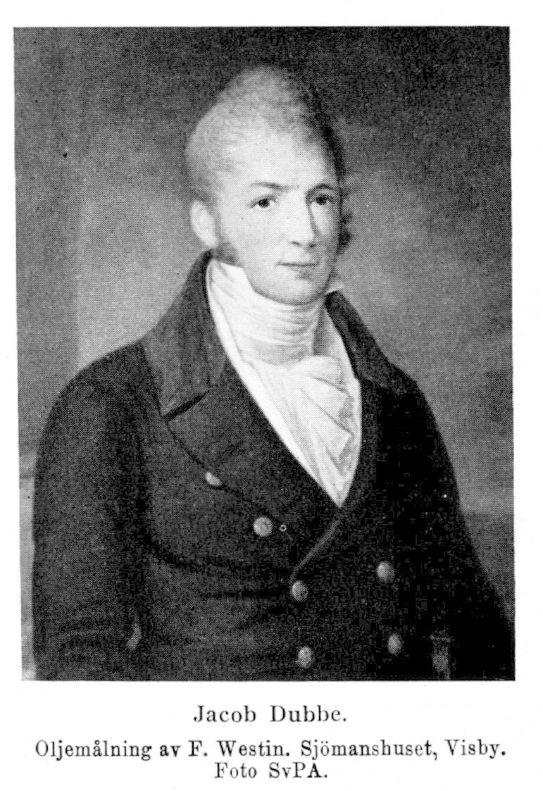 Släkten härstammar endast på mödernet från den äldre släkten Dubb. D:s farfader var en styrman Jacob Johansson, och dennes son Jacob Jacobsson tog sin moders, Elisabeth Svensdotter Dubbs släktnamn; jfr ovan släktartikeln Dubb. D:s far stod i handelshuset Donners tjänst och förde ett dess fartyg, som gick under utanför Bornholm 1777. Änkan ägde ett förhållandevis bra, än idag kvarstående hus vid Lilla strandporten, och D. var oavbrutet skriven hos modern och antecknad såsom närvarande vid husförhören ända till 1787, då han kom i tjänst som handelsbetjänt hos rådmansänkan Barbara Fåhrseus, f. Torsman (faster till D:s blivande maka). Hos henne stannade han till 1792. Vid 23 års ålder hade D. åtminstone ej någon avsevärd tid varit borta från Visby. Men 1792 försvinner han ur handlingarna från Gotland och framträder åter först i nov. 1795. Den ofta mycket otillförlitliga traditionen vill veta, att D. någon gång skall ha vistats utomlands. I detta fall torde den ha rätt, och under nämnda tre år har han säkerligen utbildat sig till handelsman, kanske med understöd av bröderna Donner eller fru Fåhræus. Att han meriterat sig för köpmansyrket är otvivelaktigt, ty vid återkomsten gjorde han ansökan om burskap som handelsman, varför han undergick godkänd examen och därpå förklarades berättigad att »varda i handelssocieteten inskriven och därefter handel och köpenskap driva». Han öppnade omedelbart bod i modems fastighet, där han fortsatte till 1799. Affärerna gingo tydligen bra, ty 1798 inköpte han det mitt emot liggande stora trappgavelshuset, det nu s. k. Lilliehornska huset, dit han inflyttade med både butiken och modern. Till bokhållare och kort därpå till kompanjon tog han Axel Hägg, som samma år gifte sig med D: s syster Catharina och placerades i östergarn på den av D. inköpta egendomen Katthamra med tillhörande kalkugnsparter, vars corps-de-logi ännu innehas av deras efterkommande; Här anlades också efter några år ett icke obetydligt skeppsvarv. »Bolaget», som i själva verket var D. ensam, började genast en framgångsrik konkurrens med firman Donner i de talrika och inkomstbringande strandningsaffärerna. Det var framför allt detta, som mycket snabbt grundade D: s förmögenhet.