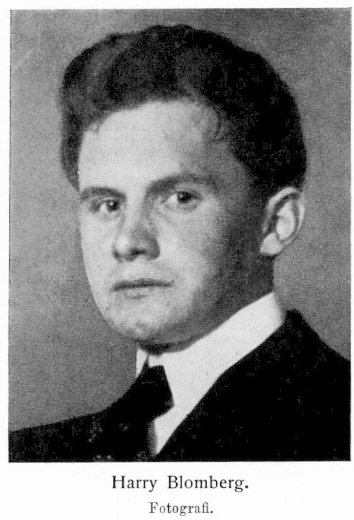 Blomberg, Harry, f. 19 dec. 1893 i Strängnäs. Föräldrar köpmannen Lars Henrik Blomberg och Ottilia Carlsson. Genomgick folkskola 1900−07; elev vid Brunnsviks folkhögskola hösten 1916−våren 1917. Typograf i Stockholm 1907−16; medarbetare i Nya Norrland (Sollefteå) 1919; redaktör för Studiekamraten (organ inom Arbetarnas bildningsförbund) 1920−21. Har företagit utländska resor 1919−24. Medlem av Sveriges författarförening 1918; erhöll Bonniers stipendium 1919.