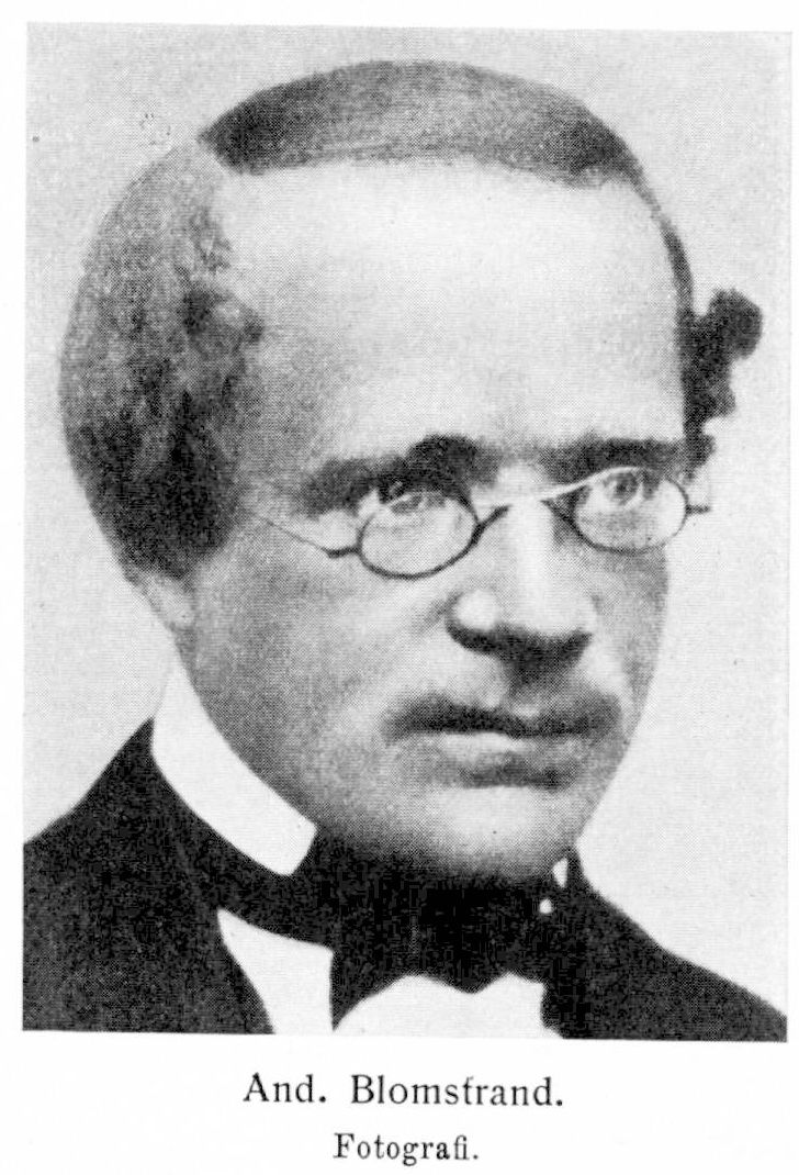 1. Anders Blomstrand, f. 19 dec. 1822 i Växjö, d 17 okt. 1887 i Lund. Föräldrar: lektorn Johan Blomstrand och Severina Rodhe. Åtnjöt skolundervisning i Växjö; student i Lund 29 sept. 1840; filol. kand. 20 juni 1842; disp. 2 apr. s. å. (Apparatus ad historiam Sveogothicam Celsiam sectio secunda, p. [XLIX] LM; pres. H. Reuterdahl); fil. kand. 3 juni 1844; disp. 19 juni s. å. (Ad Publium Virgilium Maronem ex codice membranaceo biblioth. acad. Lundensis nunc primum collato lectionis varietatem, p. IV; pres. J. G. Ek);, fil. doktor 21 juni s.å.; avlade teoretisk teol. examen 20 dec. 1845 och praktisk teol. examen 16 juni 1849; prästvigd i Lund 20 juni s. å.; presiderade i stället för pastoralexamen 27 mars 1852 (avhandlingen bedömd 31 mars); idkade tamuliska språkstudier i Leipzig 1856−57. Tf. lektor i teologi i Växjö vt. 1845; tf. gymnasieadjunkt därstädes sept. s. å.; docent i kyrkohistoria i Lund 28 dec. 1846; tf. professor i kyrkohistoria och symbolik 1847−49 och 1850−52; dels biträde, dels tf. komminister i Hällestads, Dalby och Bonderups prebendepastorat under somrarna 1849 och 1850; höll privata föreläsningar i symbolik vid Lunds universitet 1849−52; predikant vid Lunds lasarett 1852; uppförd å tredje förslagsrummet till teol. adjunkt vid Lunds universitet 5 okt. 1853; av Lunds missionssällskap utsänd som missionär till Sydindien 1857; återvände till Sverige 1885. Teol. doktor vid Köpenhamns universitets jubelfest 5 juni 1879; LNO 1885.