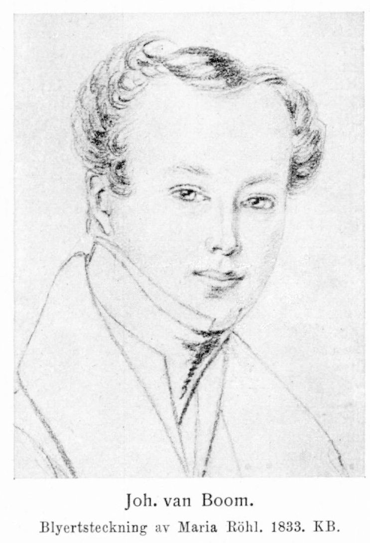 Boom, Johan (Jan) van, f. 15 sept. 1807 i Utrecht (dopboken), d 19 mars 1872 i Stockholm. Föräldrar: flöjtisten, musikläraren Jan van Boom och Maria van der Linden. Idkade musikstudier (piano) för J.N. Hummel och Ignaz Moscheles; företog konsertresor, bl. a. till Stockholm; bosatte sig därstädes 1825; privatlärare; avslöt sin offentliga virtuosbana 1847; lärare i pianospelning vid Musikaliska akademiens konservatorium ht. 1848; erhöll professors namn, heder och värdighet 10 juni 1859. LMA 1844; RVO 1850; RNO 1869; innehade dessutom utländska ordnar. — Ogift.