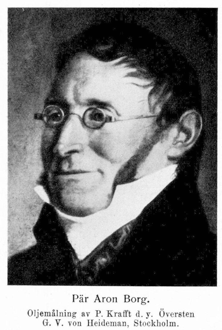 Källor: M. Chr. Bergvall, Tal då . .. Per Aron Borg jordfästades i Hedvig Eleonora kyrka d. 30 apr. 1839 (1839): T. Prawitz, Manilla dövstumskola 1812 —1912 (1913).