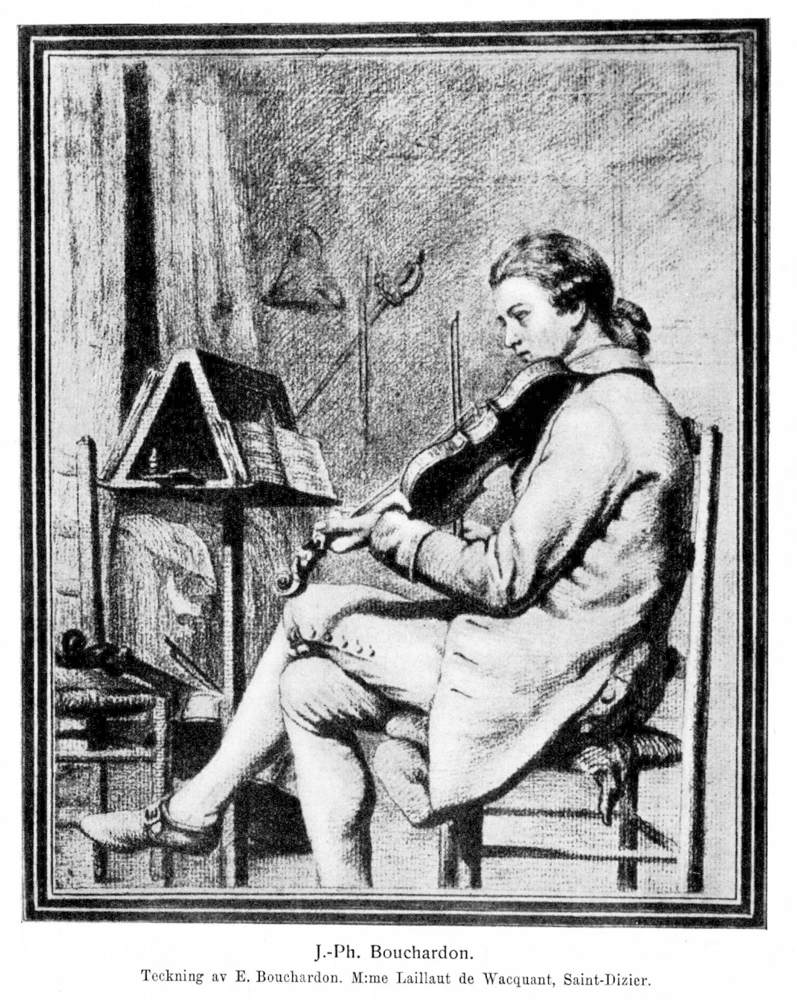 Bouchardon, Jacques-Philippe, f. 1 maj 1711 i Chaumont (dép. Haute-Marne) i Frankrike, d 19 dec. 1753 i Stockholm. Föräldrar: bildhuggaren och arkitekten Jean-Baptiste Bouchardon och Anne Chéré. Utbildade sig några år i faderns verkstad; ägnade sig åt militäryrket under åren 1730−35; studerade i brodern Edme Bouchardons ateljé i Paris från år 1735; inskriven vid Konstakademien därstädes 1736−37 (troligen ännu längre); »sculpteur du Roy» vid franska hovet; inkallad till Sverige och anställd härstädes i egenskap av »hovstatybildhuggare» 1741 (kontrakt 20/31 juli s. å. i Paris med Karl Gustav Tessin); efterträdde 1748 Taraval som ledare av »Kongl. ritarakademien» (målare- och bildhuggareakademien), vars chef han förblev till sin död; företog i sällskap med Karl Fredrik Adelcrantz en resa till Italien och Frankrike 1750−51.