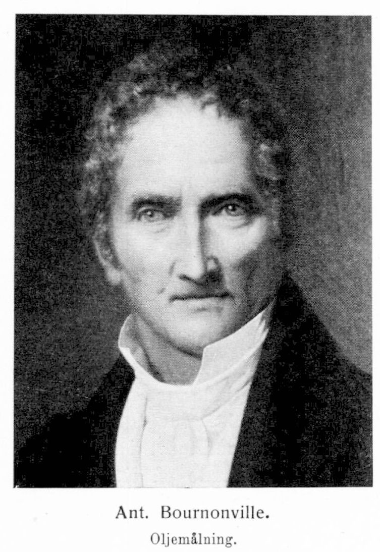 1. Antoine Bournonville, f. 19 maj 1760 i Lyon, d 11 jan. 1843 i Fredensborg. Föräldrar: teaterdirektören Amabel Louis de Bournonville och skådespelerskan Jeanne Ebrard. Elev av den berömde balettmästaren Georges Noverre i Wien 1769; kom till Paris 1779 samt dansade där och i London under tre år; premiärdansör vid K. teatern i Stockholm 1 juli 1782; uppträdde tillika som skådespelare och sångare, bl. a. på Bollhuset i apr. 1789, samt lämnade Sverige i mars 1792; gästspelade på K. teatern i Köpenhamn 17 apr. s. å. och företog därpå en resa till Paris; antog anställning som förste dansör vid K. teatern i Köpenhamn 1792, vilken befattning han förenade med sin anställning i Stockholm, till dess hans kontrakt med K. teatern utgick 31 mars 1795; erhöll avsked från förste dansörbefattningen i Köpenhamn 1816; direktör för dansen s. å.−1823.