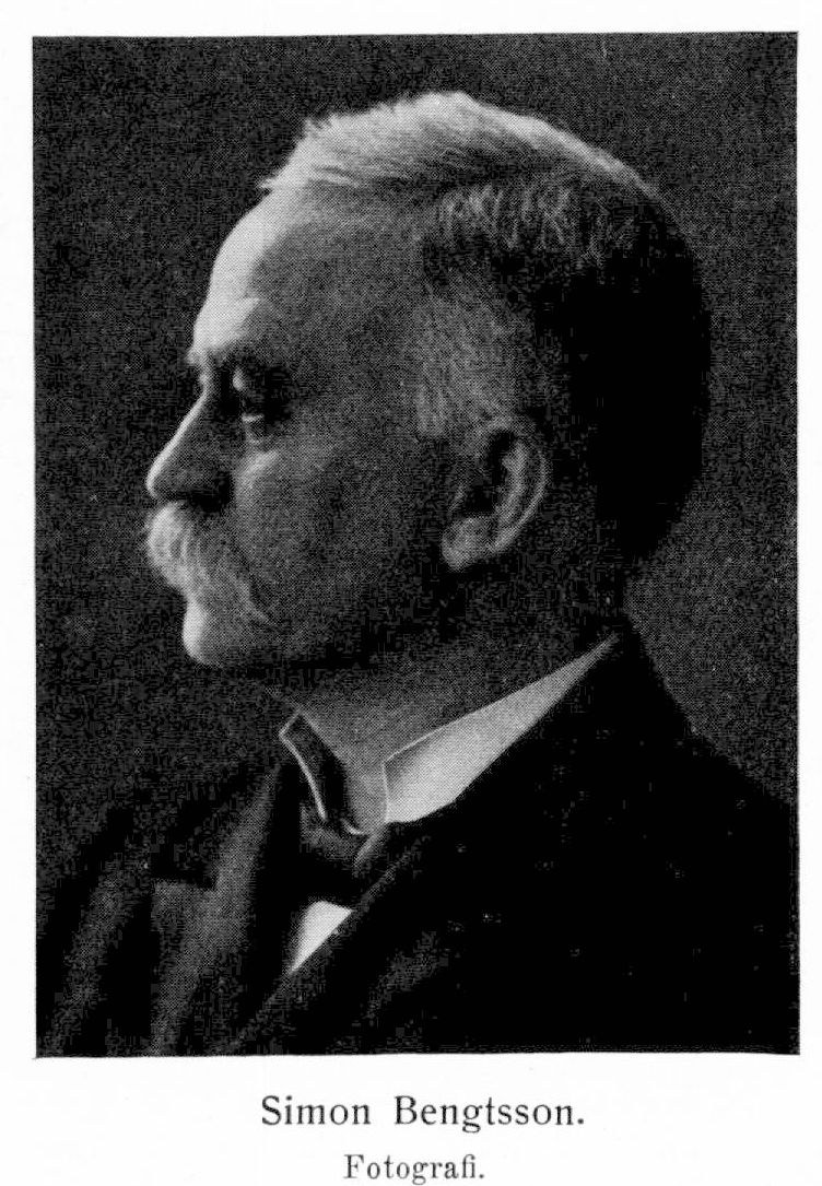 Bengtsson, Simon Fredrik, f. 2 apr. 1860 i Åmål. Föräldrar: dv. kollegan i Åmål, sedermera kontraktsprosten och kyrkoherden i Arvika Simon Bengtsson och Klara Fredrika Engblad. Intogs i Åmåls 1. elementarläroverk ht. 1869; övergick till Arvika 1. elementarläroverk ht. 1871 och till Karlstads h. elementarläroverk ht. 1873; avlade mogenhetsexamen därstädes 10 juni 1880; student i Lund 16 sept. 1881; fil. kand. 14 sept. 1889; fil. lic. 14 dec. 1896; disp. 24 maj 1897; fil. doktor 31 maj s. å.; har företagit studieresor i botaniskt ändamål till Dovre sommaren 1885 och till Skåne somrarna 1886 och 1894—95, vistades vid Kristinebergs station för zoologiska studier sommaren 1892 och arbetade med understöd av Vetenskapsakademien vid riksmuseets entomologiska avdelning 1896; har dels med understöd från samma akademi, dels på egen bekostnad för entomologiska studier besökt de flesta av Sveriges landskap samt Nord-lahden i Norge (1903). E. o. amanuens vid Lunds universitets zoologiska institution 12 dec. 1889; genomgick provårskurs vid h. allmänna läroverket i Lund 1890; amanuens vid ovannämnda institution 28 apr. 1894—1 juni 1897; vik. adjunkt vid h. allmänna läroverket i Skara ht. 1897—vt. 1898; docent i zoologi vid Lunds universitet 20 sept. 1898; amanuens vid entomologiska samlingarna 14 dec. s. å.; vik. adjunkt i entomologi vt. och ht. 1899; föreståndare för zoologiska institutionens entomologiska avdelning sedan 1 jan. 1900; utförde på uppdrag av domänstyrelsen undersökningar rörande fjärilen Nunnan å dess härjningsområden inom Södermanlands och Östergötlands län sommaren 1900; erhöll andra förslagsrummet till professor och intendent vid en av riksmuseets zoologiska avdelningar jan. 1902; vik. lärare i naturalhistoria vid Lunds privata elementarskola 1903—05; utnämnd till lektor i naturalhistoria och kemi vid h. allmänna läroverket i Malmö 9 nov. 1904 men tillträdde icke denna befattning; huvudlärare i biologi vid Lunds privata elementarskola ht. 1905— 1912; docent i entomologi vid Lunds universitet 20 sept. 1905; en av Entomologiska sällskapets i Lund stiftare och dess ordförande; lärare i entomologi fr. o. m. 1907 (första förordnande 11 dec. 1906). LFS 1907; hedersledamot av Entomologiska föreningen i Stockholm 1919; är dessutom ledamot av flera utländska entomologiska sällskap.
