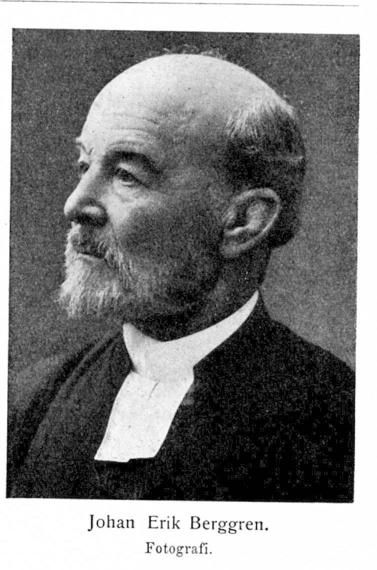 Berggren, Johan Erik, f. 12 sept. 1843 i Grums, d 11 dec. 1918. Föräldrar: hemmansägaren Johannes Johansson och Anna Katarina Jansdotter Bergman. Avlade mogenhetsexamen vid Karlstads h. elementarläroverk 2 juni 1868; student i Uppsala 14 sept. s. å.; teol. fil. kand. 29 maj 1869; avlade dimissions-examen 31 jan. 1871; teol. kand. 31 maj 1878; företog såsom Guthermuthsk stipendiat studieresa till Tyskland, Österrike, Schweiz och Italien apr. 1884—jan. 1885. Vik. adjunkt vid Karlstads h. elementarläroverk läsåret 1871 —72; lärare vid Fjellstedtska skolan i Uppsala 1873—75 och vid Uppsala h. elementarläroverk för flickor 1878 —82; predikant vid Sätra hälsobrunn 1874—76 och vid Uppsala centralhospital 24 aug. 1878—12 juni 1880; docent i exegetisk teologi vid Uppsala universitet 22 dec. 1880; förestod upprepade gånger professur (i dogmatik och moralteologi samt i exegetik); medlem av examenskommissionen för de praktiskt-teologiska övningarna 1881—86; prästvigd 27 apr. 1884; adjungerad ledamot av Uppsala domkapitel 1888; e. o. professor i dogmatik och moralteologi samt kyrkoherde i Hagby och Ramsta prebende-församlingar 6 apr. s. å.; professor i samma ämnen samt kyrkoherde i Gamla Uppsala prebendeförsamling 23 jan. 1891; ledamot av Uppsala domkapitel s. å.—1909; ledamot av kyrkomötet 1898 (vald av Uppsala domkapitel i anledning av förfall för ärkebiskopen), 1903 och 1908; förste teol. professor och domprost i Uppsala samt kyrkoherde i Vaksala 14 apr. 1899; inspektor för Uppsala folkskoleseminarium 1900 och för Prins Gustavs folkskola; erhöll 10 febr. 1905 aV K. M: t uppdrag att som deputerad för svenska kyrkan närvara vid den nya domkyrkans i Berlin invigning 27 febr. s. å.; uppförd å andra förslagsrummet till biskop i Karlstad 23 jan. 1907; erhöll avsked från professuren och domprostbefattningen 16 apr. 1909. Erhöll ur Oskar Ekmans Gustav-Adolfsdonation premium för apologetiskt författarskap 6 nov. 1887; teol. doktor 6 sept. 1893; LNO 1898; KN02kl 1907.