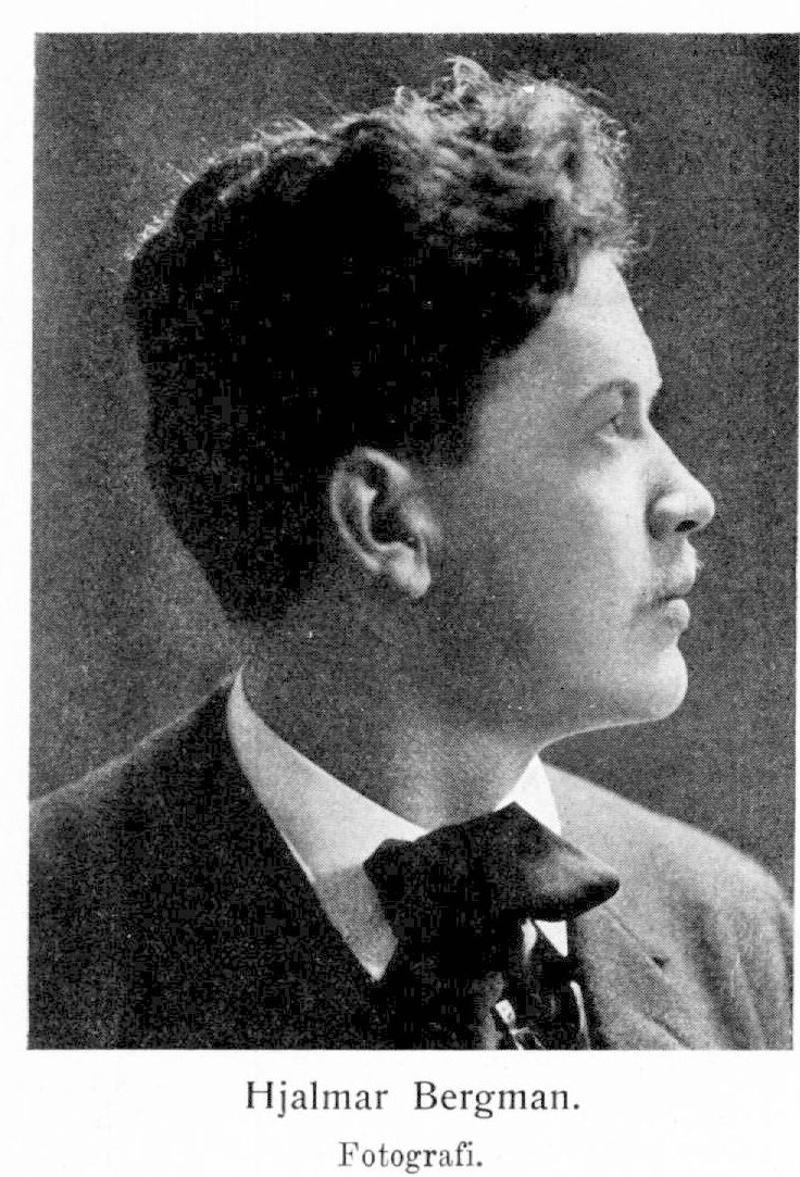 Bergman, Hjalmar Fredrik Elgérus, f. 19 sept. 1883 i Örebro. Föräldrar: bankkamreraren Klas Fredrik Frans Bergman och Fredrique Karolina Elgérus. Elev vid karolinska h. allmänna läroverket i Örebro ht. 1892—vt. 1899; avlade mogenhetsexamen i Västerås 26 maj 1900; student i Uppsala ht. s. å. —ht. 1901; idkade studier i Italien (historia och estetik) vintern 1901—02, dec. 1905—mars 1906 och jan.—mars 1907, i Paris apr. 1906, i Grekland, Smyrna och Konstantinopel 1907 samt teaterstudier i Budapest, Wien och Berlin s. å.; har dessutom företagit resor till Norge sommaren 1898, till Tyskland sommaren 1899, till Tyskland och Österrike sommaren 1900, till Tyskland, Schweiz och Italien jan.—maj 1904 samt till Italien och Tunis hösten 1905; var bosatt i Rom hösten 1909—hösten 1911; innehade Bonniers stipendium 1910 och 1915.
