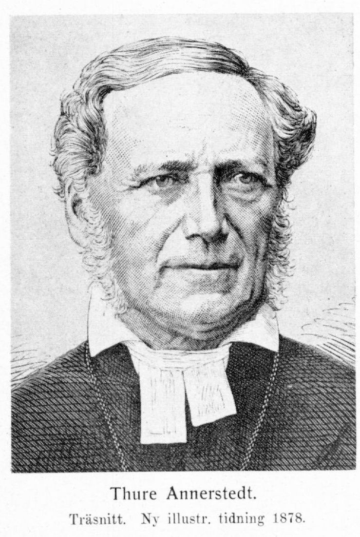 3. Thure Annerstedt, den föregåendes broder, f. 6 jan. 1806 i Tensta, d 6 nov. 1880[1] i Strängnäs. Student i Uppsala 8 okt. 1824; disp. 13 febr. 1828 (Ad loca selecta e Geneseos XII— XXV, p. VI, pres. G. Knös); fil. kand. 3 mars 1830; disp. 17 apr. s. å, (Odarion quadragesimum tertium et quartum Anacreontis, Melici yatis, pres. J. Tranér); fil. magister 16 juni s.å.; prästvigd 19 dec. s. å.; avlade pastoralexamen 15 febr. 1834; disp. 13 juni 1838; teol. lic. 23 dec. 1839. Pastoratsadjunkt i Bälinge 1830; docent i pastoralteologi och notarie i teologiska fakulteten 23 apr. 1833; regementspastor vid Värmlands regemente 17 maj 1834; adjunkt i pastoralteologi vid Uppsala universitet och kyrkoherde i Börje 19 okt. 1840; ord. ledamot av domkapitlet 9 juli 1843; kyrkoherde i Örebro 11 mars 1846; kontraktsprost 20 juli s. å.; bevistade som fullmäktig för Strängnäs stift och som biskop riksdagarna 1847–66 och var 1856–66 prästeståndets v. talman; ledamot av kommittén angående nya predikotexter 6 juli 1849–3 aug. 1850; biskop i Strängnäs 21 apr. 1852; ledamot av kommittéerna angående ny kyrkohandbok och katekes (bet. 1854, 1855, 1856) samt angående pensionsanstalten för folkskollärare (bet. 25 maj 1855). Teol. doktor 14 juni 1845; LNO 1851; KNO 1858; ordensbiskop och KmstkNO 1860.