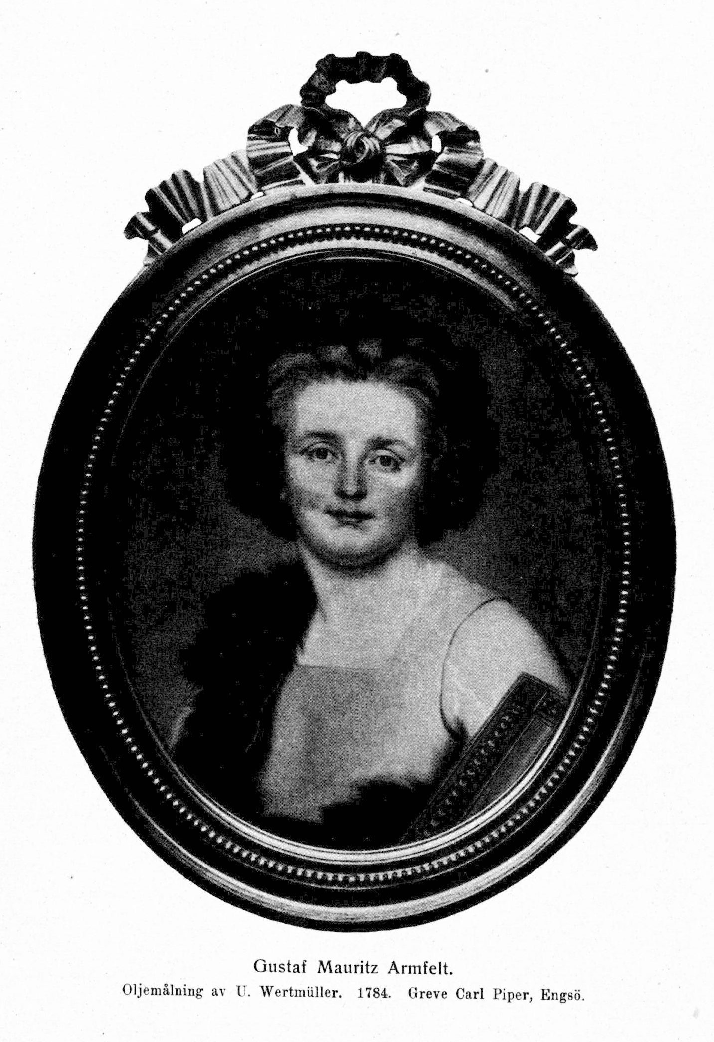 4. Gustaf Mauritz Armfelt (det senare förnamnet ej givet i dopet utan upptaget av A. på grund av beundran för Morits av Sachsen), f. 31 mars 1757, d. 19 aug. 1814 på Tsarskoje Selo vid Petersburg. Föräldrar: generalmajoren och landshövdingen friherre Magnus Vilhelm Armfelt och Maria Katarina Wennerstedt. Studerade vid Åbo universitet 1770–71; kadett vid amiralitetsskolan i Karlskrona; korpral vid Åbo läns livdragoner 1771; sergeant 1772; avlade officersexamen maj 1773; fänrik vid livgardet 28 jan. 1774; löjtnant 30 apr. 1777; erhöll 12 juni 1778 tillstånd att träda i utländsk krigstjänst under två år; kavaljer hos kronprins Gustav Adolf juli 1781; kapten vid gardet 3 apr. 1782; kompanichef 17 apr. 1783; överstelöjtnant i armén och generaladjutant av flygeln 25 juni s. å.; överstekammarjunkare s. å.; överstelöjtnant vid Nylands infanteriregemente 12 apr. 1786 men med fullmaktsdatum 10 febr. s. å.; förste direktör för K. teatrarna 1 juli s. å.–1 apr. 1792; överste för nyssnämnda regemente och generaladjutant 30 juni 1787; erhöll självständigt befäl i Finland 1788; ordförande i utredningsdeputationen i Karlstad för gränsförsvaret 24 sept. s. å.; brigadchef för frikåren i Dalarna och befälhavare över trupperna vid värmländska gränsen 29 sept. s. å.; erhöll ånyo befäl över trupperna vid norska gränsen 10 febr. 1789; medlem av »hemliga krigsberedningen» maj s. å. samt av kommissionen för flottornas utrustning m. m. (jmfr K. brev 15 dec. 1790); ledamot av regeringen under konungens frånvaro 1789; erhöll befäl i Finland i slutet av s. å.; generalmajor 10 juni 1790; förde befäl över andra livgardet 16 dec. s. å.–25 maj 1792; chef för Närkes och Värmlands regemente 29 mars 1791; kansler vid Åbo akademi 13 sept. s. å.–21 nov. 1792; ledamot av regeringen 29 mars 1792;. överståthållare s. d.–7 sept. s. å.; generallöjtnant 15 maj s. å.; minister vid italienska hoven 7 sept. s. å.; erhöll avsked med pension från överstebeställningen 12 jan. 793; flydde 1794 från Neapel på grund av svenska regeringens begäran om hans utlämnande (av 5 dec. 1793); dömd förlustig liv, ära och gods 22 sept. 1794; genom nåd befriad från ådömt straff och återställd till namn och heder 16 nov. 1799; svensk envoyé i Wien 17 sept. 1802; återkallad 30 okt. 1804; generalbefälhavare i Pommern 9 nov. s. å.–1 maj 1807; general av infanteriet 7 apr. 1807; högste befälhavare för västra, mot Norge opererande armén våren 1808 till aug. samt ånyo efter revolutionen 1809 till sept. s. å.; en av rikets herrar vid Karl XIII:s kröning 1809; president i krigskollegium 29 juni s. å.; ledamot i kommittén angående arméns medicinalverk 17 juli s. å.; erhöll avsked ur svensk statstjänst 11 okt. 1810; finsk undersåte 1811; ordförande i kommittén för finska ärendena i Petersburg s. å.; rysk general av infanteriet och kejsarens förste generaladjutant 1812; ånyo kansler för Åbo universitet 5 juni (n. st.) s. ä.; finsk-rysk greve s. å.; tf. generalguvernör över Finland sept. s. å.–mars 1813. LMA 1788; RSO 1789; KmstkSO. 1790; RoKavKMO s. å.; en av de 18 i Sv. akad. 1786–94 samt ånyo (utan särskilt inval) 1805–11; arbetande HedLKrVA 1807 (styresman 1808–09); innehade ett flertal utländska ordnar.