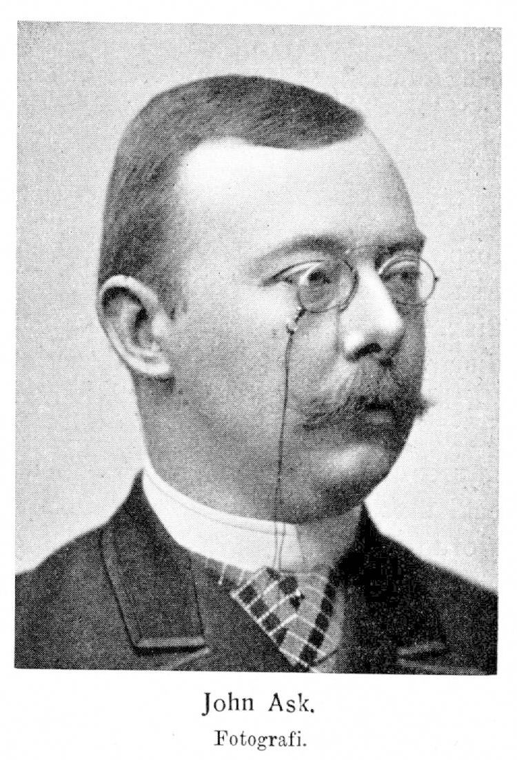 2. John Adolf Ask, den föregåendes son, f. 17 nov. 1854 i Lund, d därstädes 14 okt. 1907. Intogs ht. 1863 i Lunds h. elementarläroverk; avlade mogenhetsexamen därstädes 29 maj 1874; student vid Lunds universitet 7 sept. s. å:; avlade jur. fil. examen 29 jan. 1876; jur. utr. kand. 31 okt. 1879; företog hösten 1882, sommaren 1884 samt, såsom innehavare av von Reiserska resestipendiet, somrarna 1888 och 1889 utrikes resor för vetenskapligt ändamål. Auskultant i hovrätten över Skåne och Blekinge, 12 nov. 1879; tingsbiträde i Ingelstads och Järrestads härads domsaga nov. 1879–febr. 1882 och förvaltade därunder häradshövdingämbetet i samma domsaga sammanlagt 21/2 månad samt höll sex allmänna och ett särskilt tingssammanträde; v. häradshövding 20 dec. 1881; docent i fäderneslandets gällande civilrätt vid Lunds universitet 4 nov. 1882; notarie i juridiska fakulteten 19 dec. 1882–30 maj 1891; e. o. amanuens vid universitetets räntekammare och kansli 16 jan. 1883 och ord. amanuens därstädes 30 aug. 1887–28 maj 1891; notarie i medicinska fakulteten 17 jan. 1883–25 apr. 1885; fullgjorde helt eller delvis tjänstgöringsskyldigheten för professurerna i romersk rätt och rättshistoria (företrädesvis) samt civilrätt under skilda perioder ht. 1883–31 maj 1891 och förrättade därunder på grund av särskilda uppdrag examina jämväl i andra ämnen; e. o. professor i statsrätt, allmän administrativrätt, folkrätt och sjörätt 1 maj 1891; uppfördes 30 apr. 1892 i andra rummet ål förslag till professuren i civilrätt och 20 febr. 1897 i första rummet å förslag till professuren i processrätt vid Lunds universitet; professor i statsrätt, förvaltningsrätt, kyrkorätt och folkrätt 2 febr. 1900; jur. utr. hedersdoktor i Lund 26 maj 1893. RNO 1901.