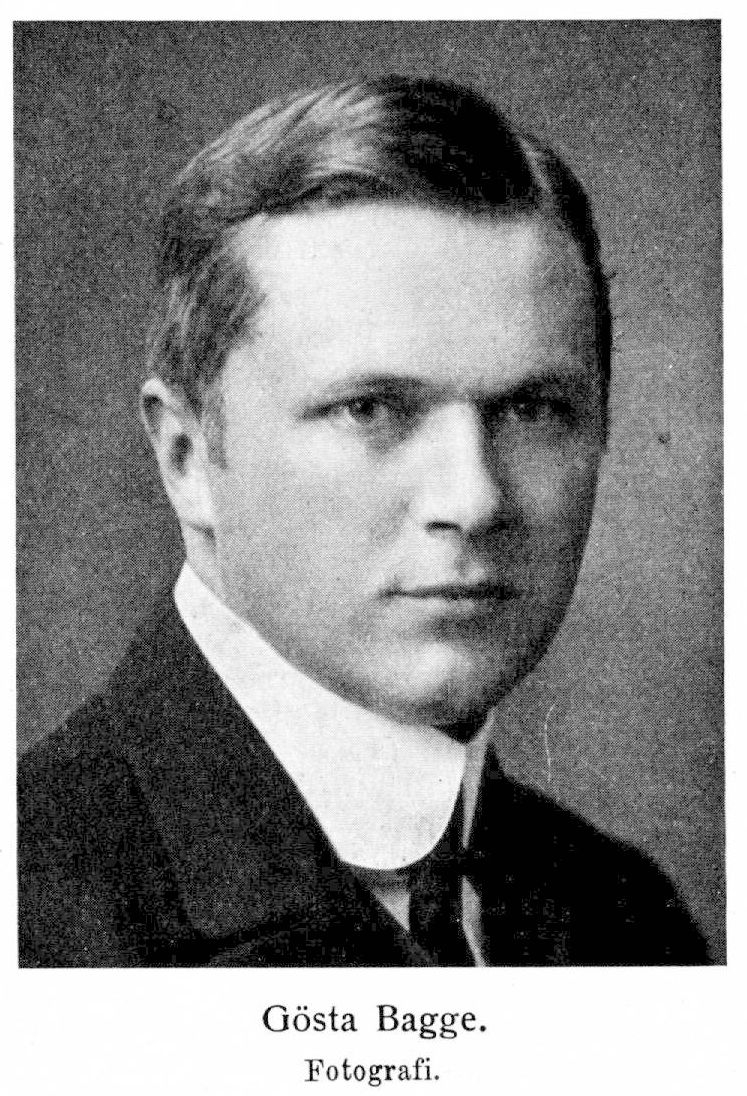 Gösta Adolfsson Bagge, f. 27 maj 1882 i Stockholm. Föräldrar: bankokommissarien Adolf Olof Fredrik Bagge och Sigrid Agnes Schuberth. Lärjunge vid Stockholms högre latinläroverk å Norrmalm ht. 1892; avlade mogenhetsexamen därstädes 15 maj 1900; student i Uppsala 17 juli s. å.; fil. kand. 30 jan. 1904; studerade vid The Johns Hopkins university i Baltimore 1904–05; fil. lic. vid Stockholms högskola 15 dec. 1911; disp. därstädes 29 maj 1917; fil. doktor 30 maj s. å.; har företagit ett flertal utländska resor och har därunder bl. a. deltagit i settlementrörelsen i England 1902 och i Amerika 1905, med understöd av Söderströmska fonden bedrivit nationalekonomiska studier i England, Frankrike, Tyskland och Italien 1912 samt studerat understödsverksamheten under kriget i Tyskland 1917. Amanuens vid kommerskollegiets avdelning för arbetsstatistik 21 aug. 1906–30 jan. 1909; medföljde på uppdrag av emigrationsutredningen en emigrantångare till Norra Amerika 1907 för insamlande av uppgifter rörande emigranternas ekonomiska och sociala förhållanden; har tjänstgjort som sekreterare vid förhandlingar mellan arbetsgivare och arbetare vid åtskilliga större konflikter, första gången 1908; sekreterare i statistiska kommittén 5 febr. 1909–7 sept. 1910; stadsfullmäktig i Stockholm fr. o. m. sommaren 1913 och har därunder varit ledamot av beredningsutskottet från 1918; ledamot av Stockholms stads folkskoledirektion 1914–18 och har därunder varit ledamot av dess undervisningsnämnd 1914–15 samt delegerad för folkskoleärenden 1918; ledamot av folkskoledirektionens centralkommitté för barnbespisning i skolorna 1914–15, i dess barnbespisningsnämnd 1915–17 (ordförande 1917) och ordförande för de delegerade för barnbespisningsärenden 1918–19; revisor i fattigvårdsnämnden 1914–17 och i Stockholms stads rättshjälpskontor 1917; docent vid Stockholms högskola 30 maj 1917; biträdande lärare i nationalekonomi vid handelshögskolan 15 juni s. å. samt tf. professor i samma ämne därstädes 1918–19; ordförande i Stockholms stads arbetsförsäkringskommitté 22 maj 1918, vid förhandlingarna mellan Stockholm, Malmö och Göteborg å ena sidan och kommunalarbetarförbundet å den andra angående förhandlingsordning och kollektivavtal 1919 samt i svenska statsförbundets kommitté för befrämjande av samarbete mellan rikets städer och municipalsamhällen vid kommunalarbetarfrågors handläggning 1919–20; andre v. ordförande i Stockholms stadsfullmäktige 1 apr. 1920.