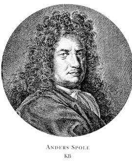 Spole, Anders (Andreas), f 10 juli 1630 i Barnarp, Jönk (enl självbiogr, tr i Wilsta-dius), d 1 aug 1699 (Liung) i Uppsala (A A v Stiernman, Matr över Svea rikes ridder-skap o adel, 2, 1755, s 1105). Föräldrar: bergsmannen Peder Andersson o Gunilla Pedersdtr. Elev vid Jönköpings skola 41-52, inskr vid univ i Greifswald 31 aug 52, vid UU 2 okt 55, studier i artillerivetenskap o navigation vid Feuerverket i Sthlm 61-63, mästarbrev i navigations- o fyrverk-erikonsterna där 14 dec 63, studieresa till Holland, England, Frankrike o Italien 64-67, inskr vid univ i Leiden juni 64, vid univ i Oxford 28 juli 64, prof i matematik, astronomi, fysik o navigation vid LU 30 nov 67 (tilltr 28 juni 68)-76, häradsh i exspektans i Sunnerbo hd 26 dec 76, erhöll frälsefrihet för sina hemman 24 juli 77, prof i matematik o astronomi vid UU från 28 mars (tilltr 2 juni) 79, erhöll privilegium att utgiva almanackor 2 sept 86.