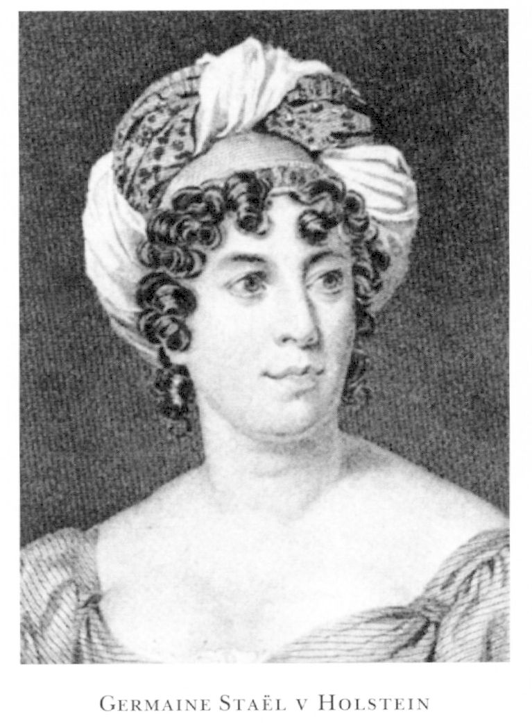 Anne Louise Germaine S (Madame de Staël): Den sv utrikespolitikens hist, 3:1-2, 1792-1844 (1954); M Gutwirtb, Madame de S, novelist: the emergence of the artist as woman (1978); A Haggard, Madame de S: en sv ambassadörsgemåls triumfer o nederlag (1923); J C Herold, Madame de S: härskarinna över en epok (1960); R Osvald-Sirén, Madame de S: Sveriges världsberömda ambassadris (1945); J Wickman, M:me de S o Sverige: bidr till M:me de S:s biogr ... handskner (1911).