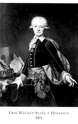 Källor o litt: F Almén, Gustav III o hans rådgivare (1940); H Borelius, Carl Gustaf v Brinkman, 1-2 (1916-18); S Carlsson o T Höjer, Den sv utrikespolitikens hist, 3:1-2,1792-1844 (1954); G Castrén, Gustav Philip Creutz (1917); H E Charlotta, Dagbok, 3-6 o 9 (1907, 1920,1923, 1927 ol942); D Cooper, Talleyrand (1951); J A Ehrenström, Efterlämnade hist anteckningar, ed SJ Boéthius, 1-2 (1882-83); A v Fersen, Dagbok, ed A Söderhjelm, 1-4 (1925-36); F A v Fersen, Hist skrifter, 5-6 (1870); R F Hochschild, Memoarer, ed H Schiick, 2-3 (1909); O Jägerskiöld, Den sv utrikespolitikens hist, 2:2,1721-1792 (1957); L Krusius-Ahrenberg, Tyrannmördaren C F Ehrensvärd (1947); E Lönnroth, Den stora rollen: kung Gustaf III spelad av honom själv (1986); Odhner, 2-3, reg SBL; P de Pange, Monsieur de S (1931); G v Proschwitz, Gustave III par ses lettres (1986); H Schack, M o M.me de S: en äktenskapshist i bref (1905); H Stålhane, Gustaf III» resa till Italien o Frankrike (1953); A Söderhjelm, Sverige o den franska revolutionen, 1-2 (1920-24); J Wickman, M:me de Staél o Sverige: bidr till M:me de Staéls biogr ... (1911); O F Winter, Repertorium der diplomatischen Vertreter aller Länder, 3, 1764-1815 (1965).