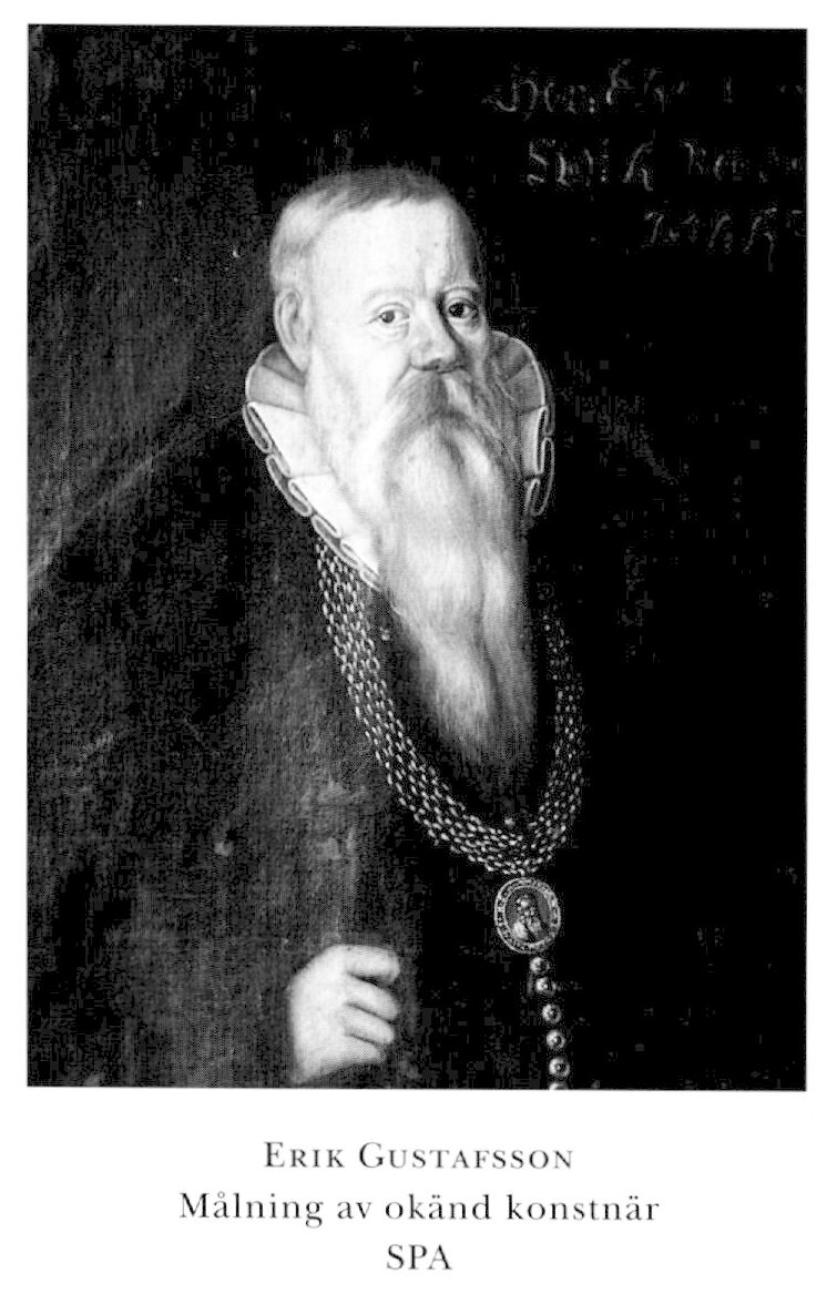3 Erik Gustafsson (Stenbock), son till S 1, f 28 juli 1538 i Länghem, V Götaland (Malin Stures släktbok, utg av S Leijon-hufvud, PHT 1913, tr 1914, s 150), d i juni 1602 i Malmö (brev från makan, se C M Stenbock, Malin Stures bortrövande, 1916). Kammarjunkare senast 5 maj 61, frih 29 juni 61, ryttmästare för Västgöta o Smålands adelsfana 30 sept 63, överste för rytteriet i Småland o Västergötland 1 nov 67, för rytteriet i hela riket 29 nov 67, befälhavare över trupperna i de södra gränslandskapen 2 april 68, riksråd senast 13 okt 68 (ed 2 aug 69)-99, fältöverste för krigsfolket i Västergötland, Småland o Östergötland 13 okt 68, lagman i Västergötlands lagsaga 20 nov 68-97, fältöverste för allt krigsfolket 20 dec 69, kommissarie för Alvsborgs lösen i Västergötland 23 febr 70, ståth i Västergötland senast 27 aug 75-97, häradsh i Kind 18 mars 80-97, landsflyktig i Danmark o Polen 97-98 o från 99.