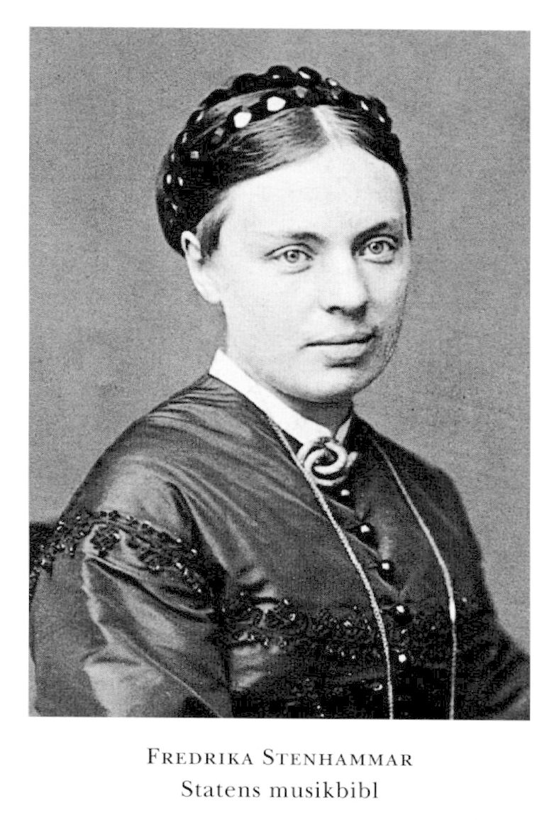 2 Stenhammar, Fredrika, svärdotter till S 1, f 19 sept 1836 i Visby, d 7 okt 1880 i Sthlm, Hovförs. Föräldrar: provinsialläkaren Andreas Andrée o Eberhardina Lovisa Lyth. Piano- o sångstudier i Leipzig 51-53, engagerad vid hovoperan i Dessau, Anhalt, Tyskland, 54-55, vid K teatern i Sthlm 1 sept 55-30 juni 57 o från 1 juli 59 (frånvarande nov 67-sept 68), sångstudier i Paris 57-58, sångpedagog, tonsättare. -LMA 64, Litt et art 76.